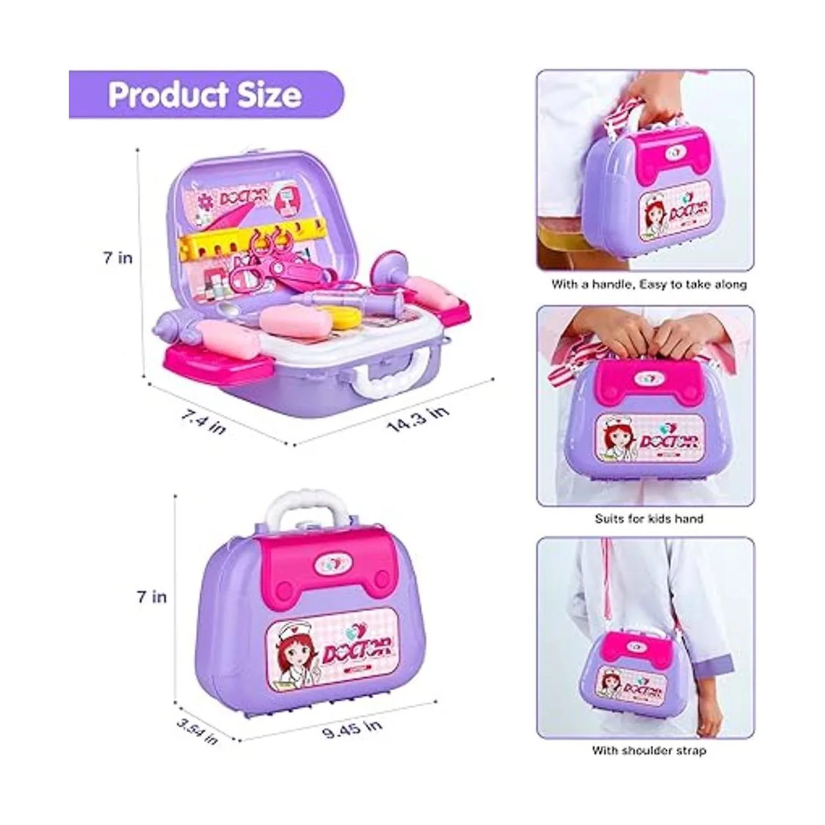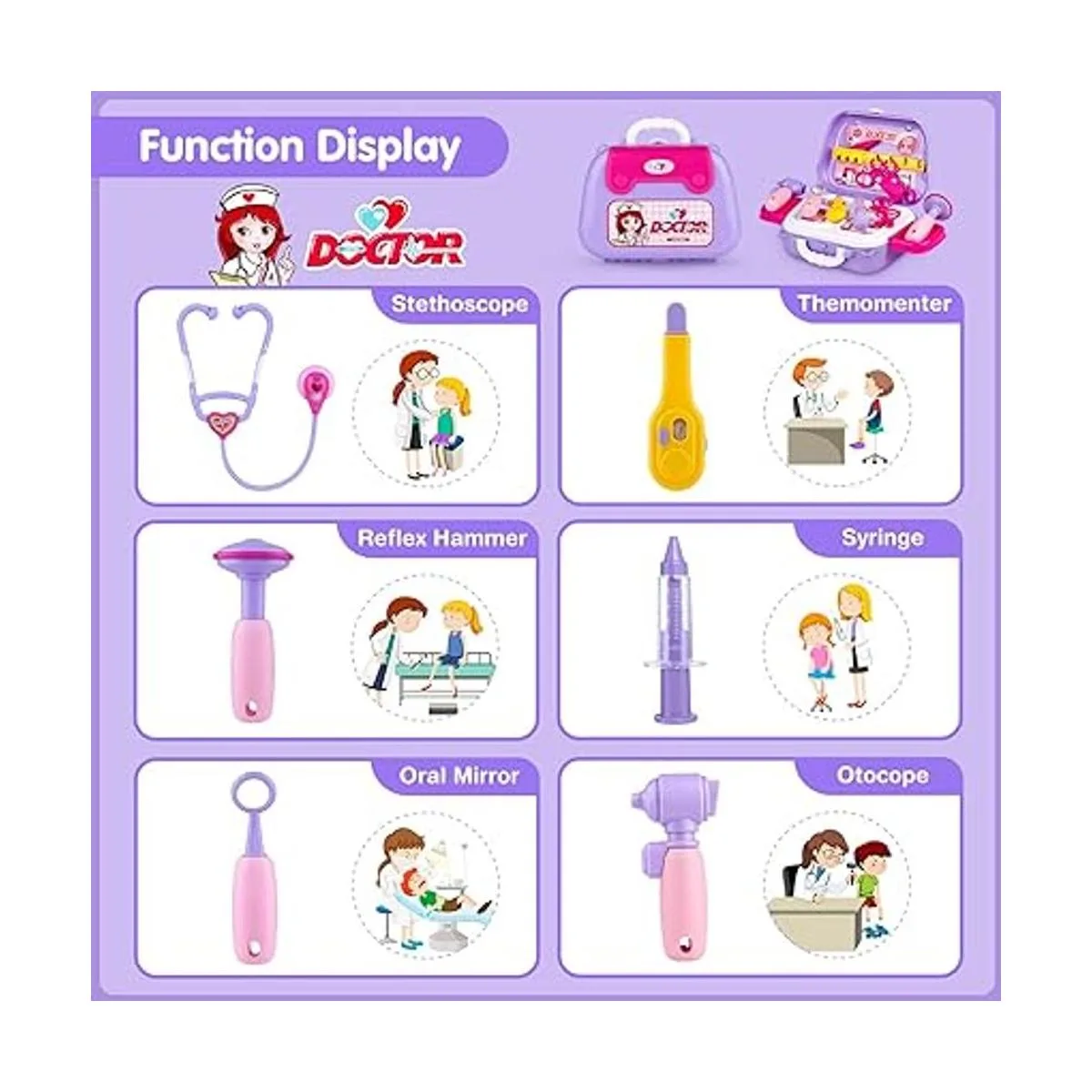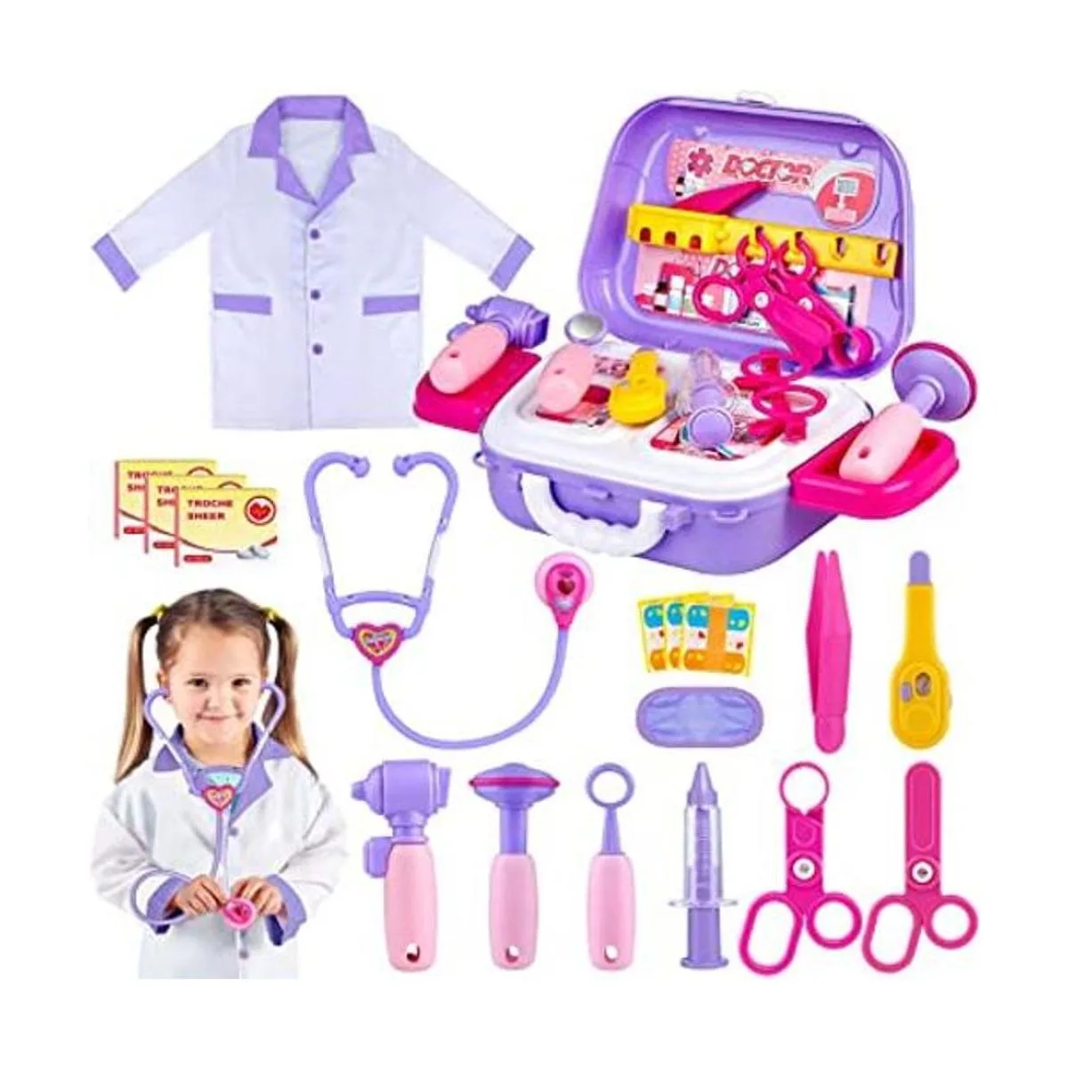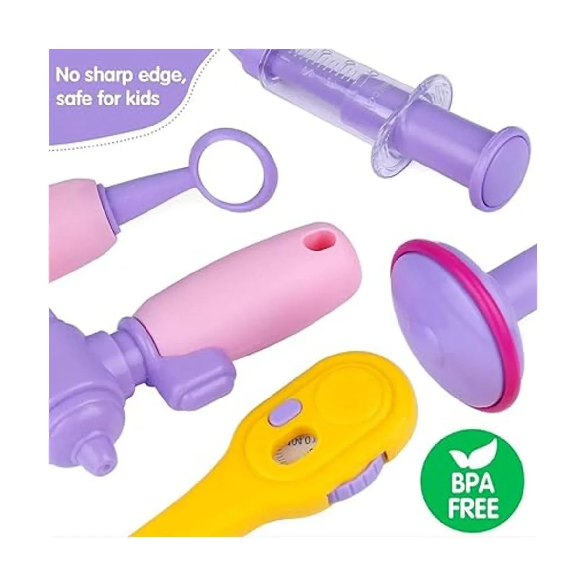 GIFTINBOX Kit de doctor para niños, kit de doctores morados para niños, juego de 22 juguetes médicos con juego de rol y bolsa de transporte para niñas pequeñas, B