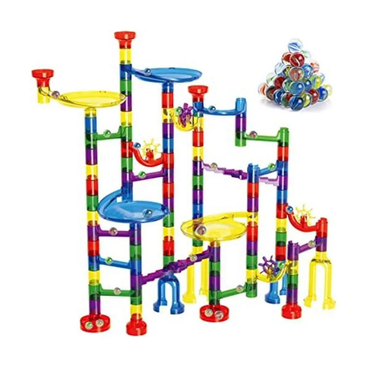 Gifts2U Juegos de carreras de mármol para niños, 122 piezas de canicas 90 piezas de mármol translúcidas + 32 canicas de cristal, bloques de construcción de laberinto de mármol STEM para niños de 4 años