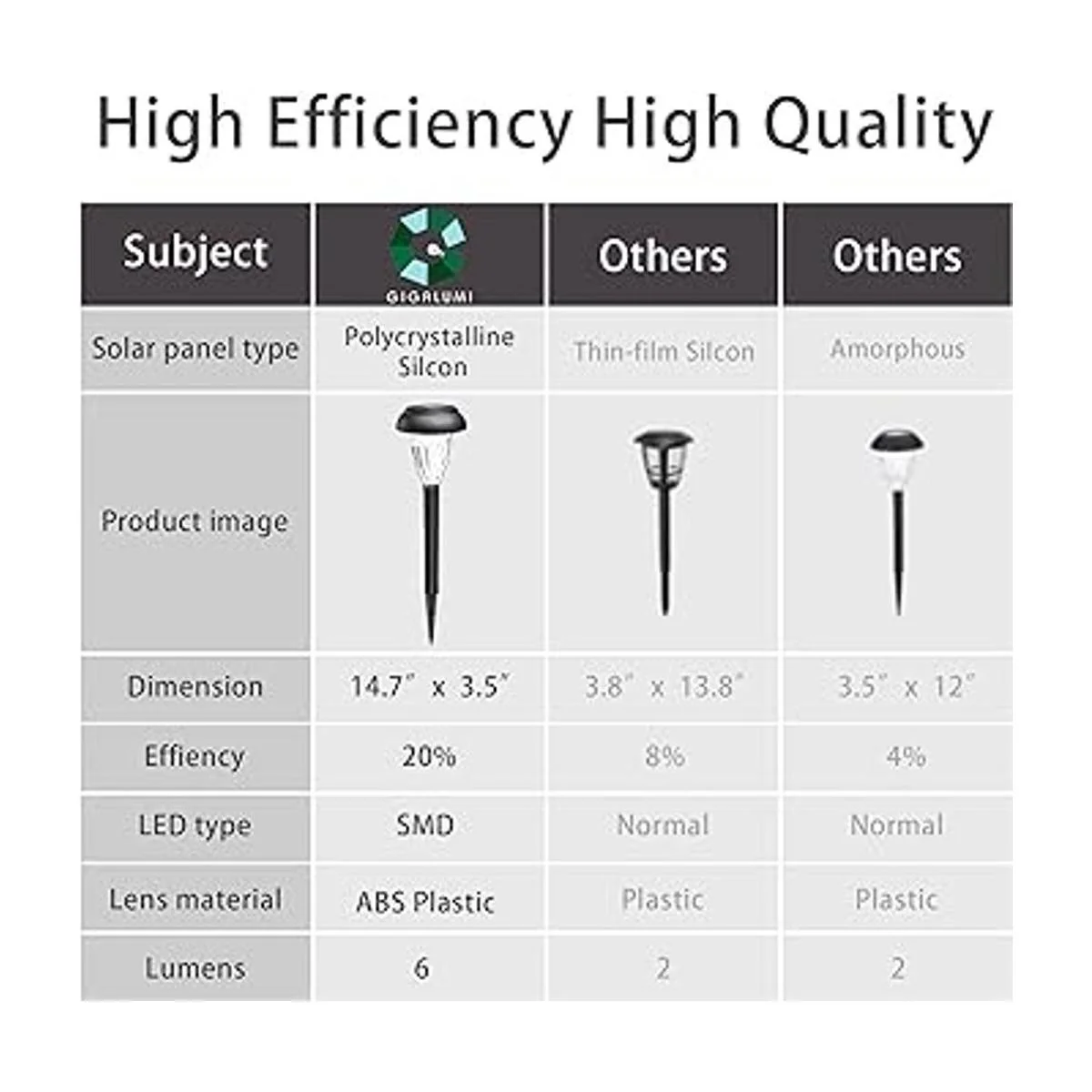 GIGALUMI Luces solares para caminos paquete de 12, luces solares impermeables para jardín, luces solares brillantes LED para camino, luces exteriores para paisajes, jardines, caminos, pasarelas y entradas blanco frío