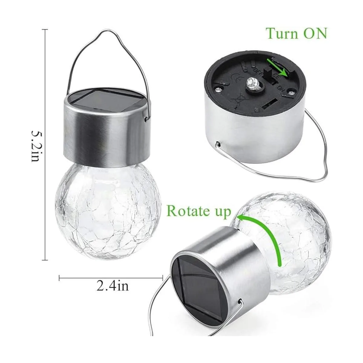 Material de alta calidad: con un globo de vidrio agrietado brillante, un gancho de acero inoxidable resistente y un LED brillante que cambia de color, añade un efecto de luz superior a tu jardín.