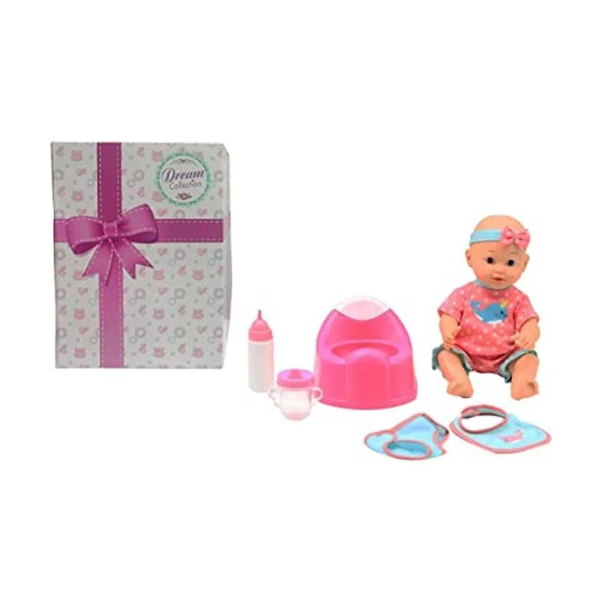 Incluye orinal, botella de leche, taza de agua, pañal y babero
