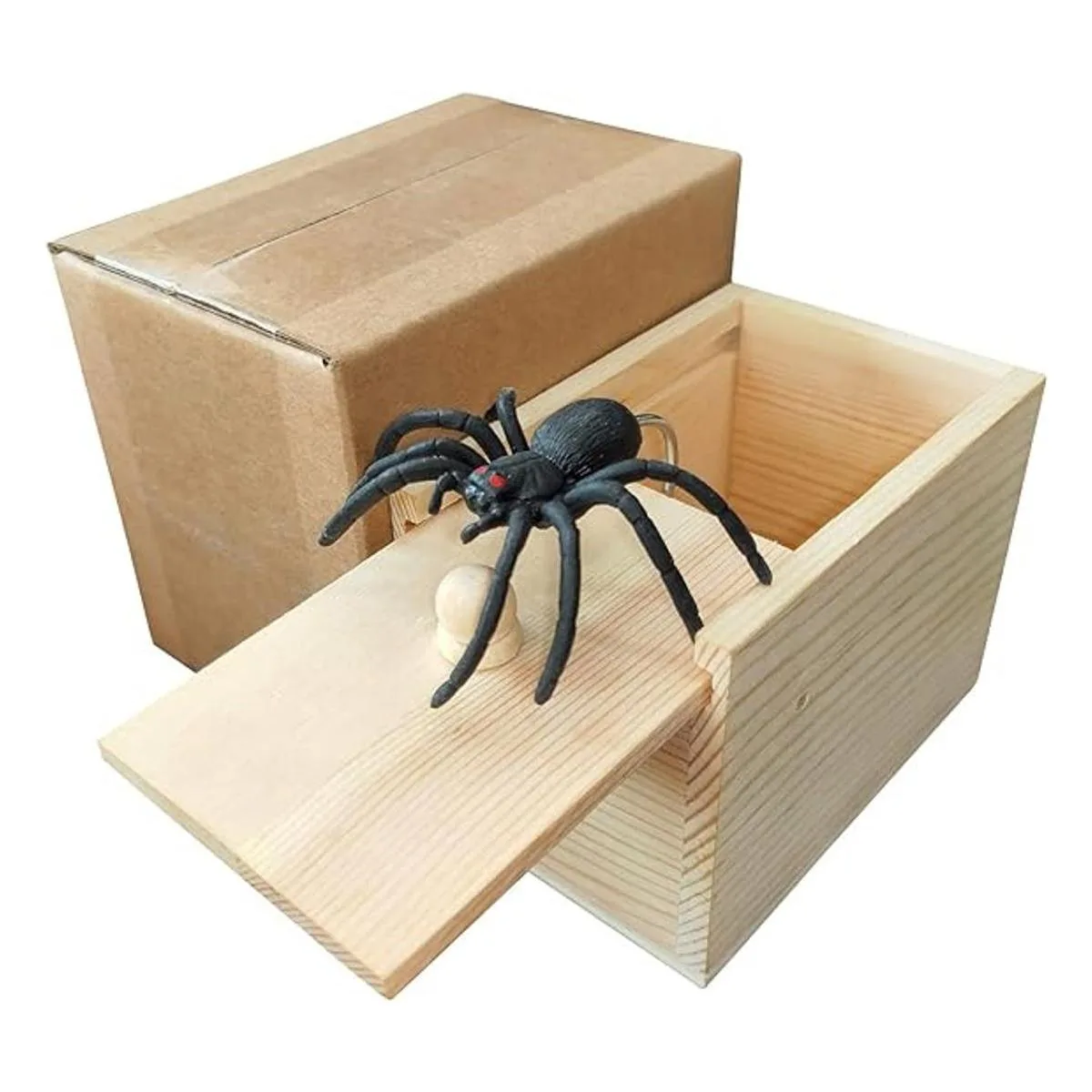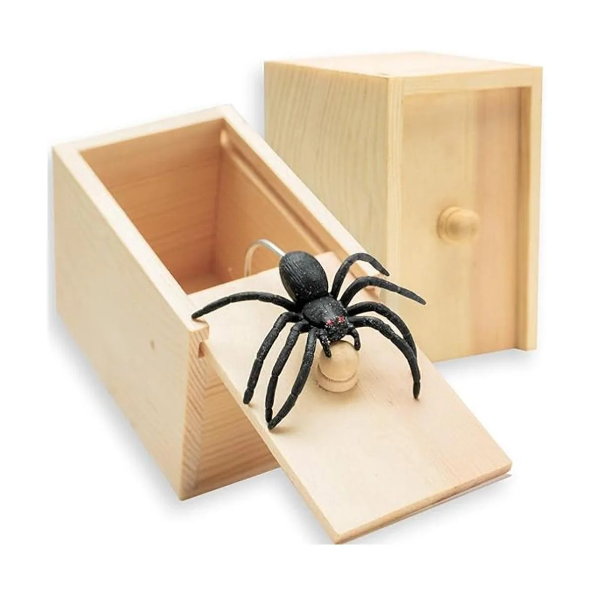 Cajas de madera y arañas de goma, esta broma funciona en todos: niños, adultos, hombres o mujeres. Mejorado para mayor durabilidad
