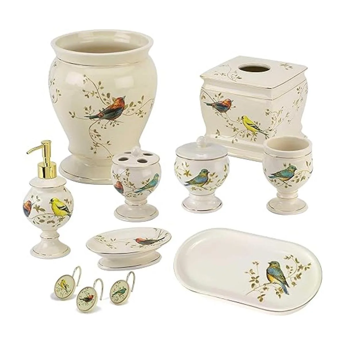 Gilded Birds Collection Dispensador de jabón bomba de loción, color marfil