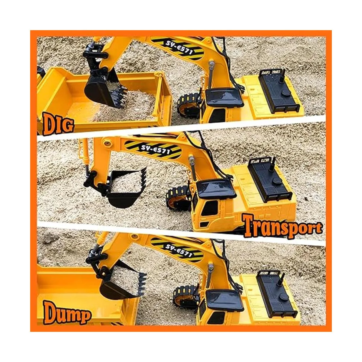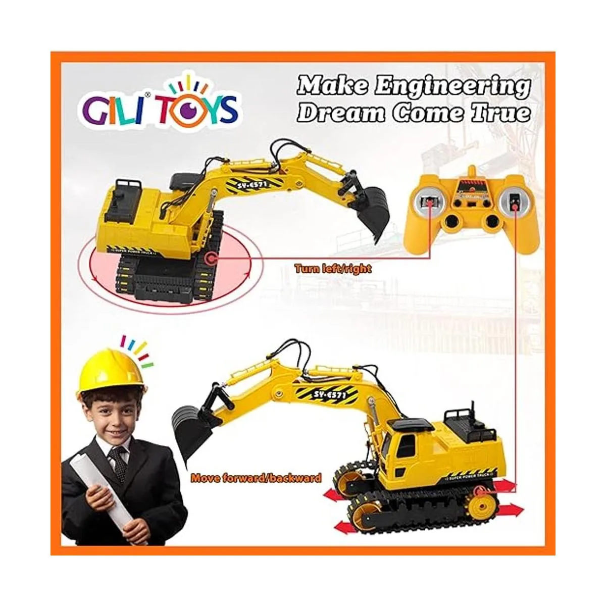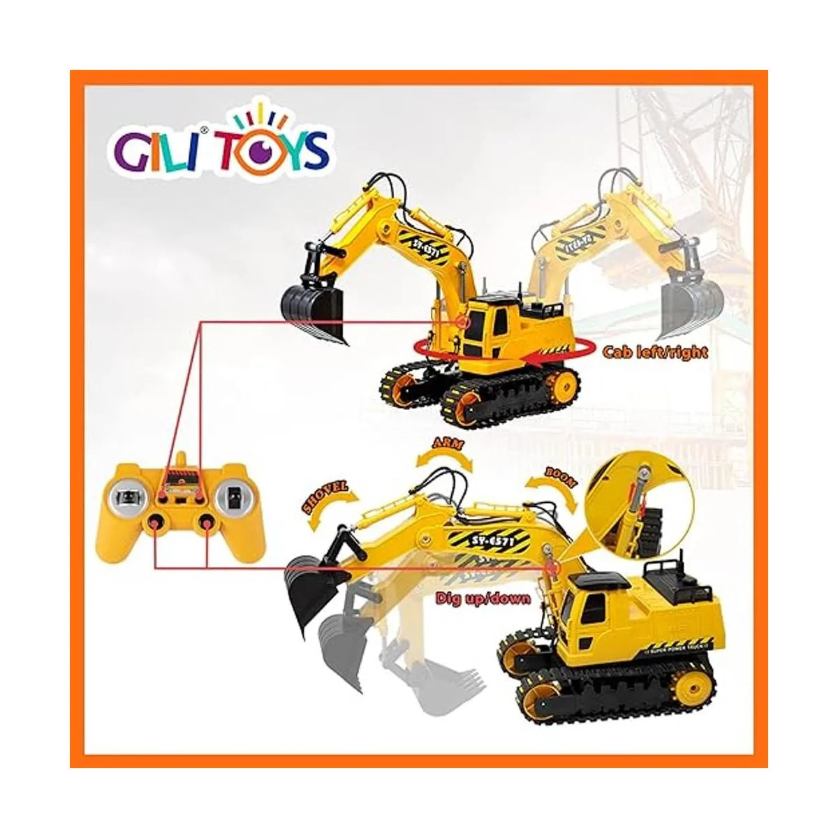 Gili Juguete excavadora de control remoto, auto de juguete hidráulico con control remoto para niños de 4, 5, 6, 7, 8 años, vehículo tractor de construcción, camión excavador de ingeniería recargable, el mejor regalo de cumpleaños para niños de 3 años