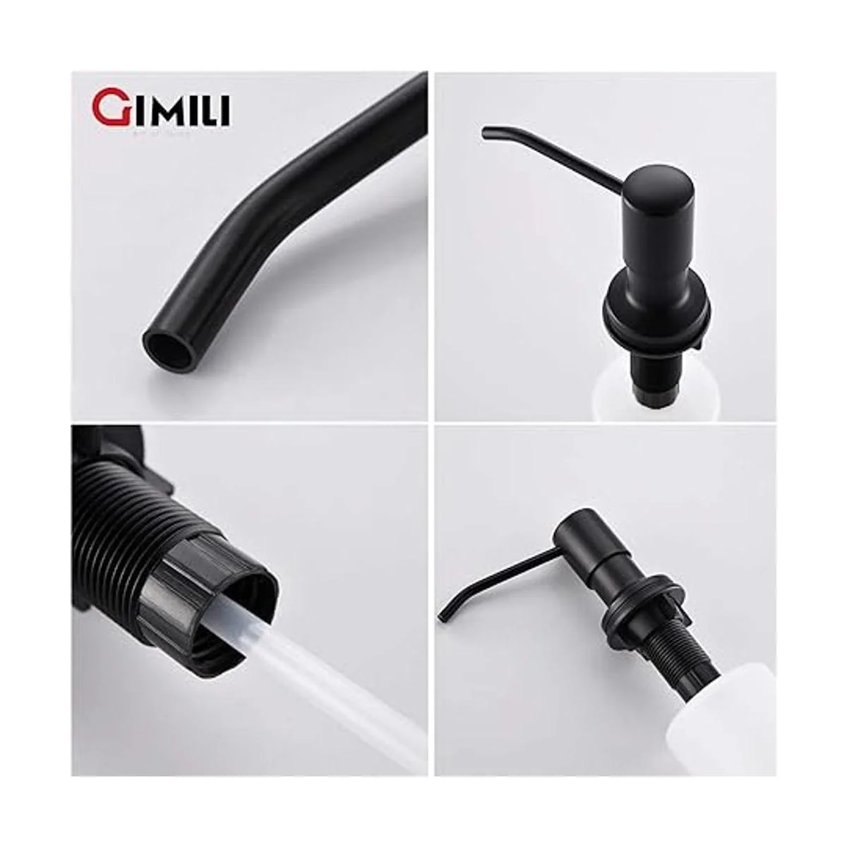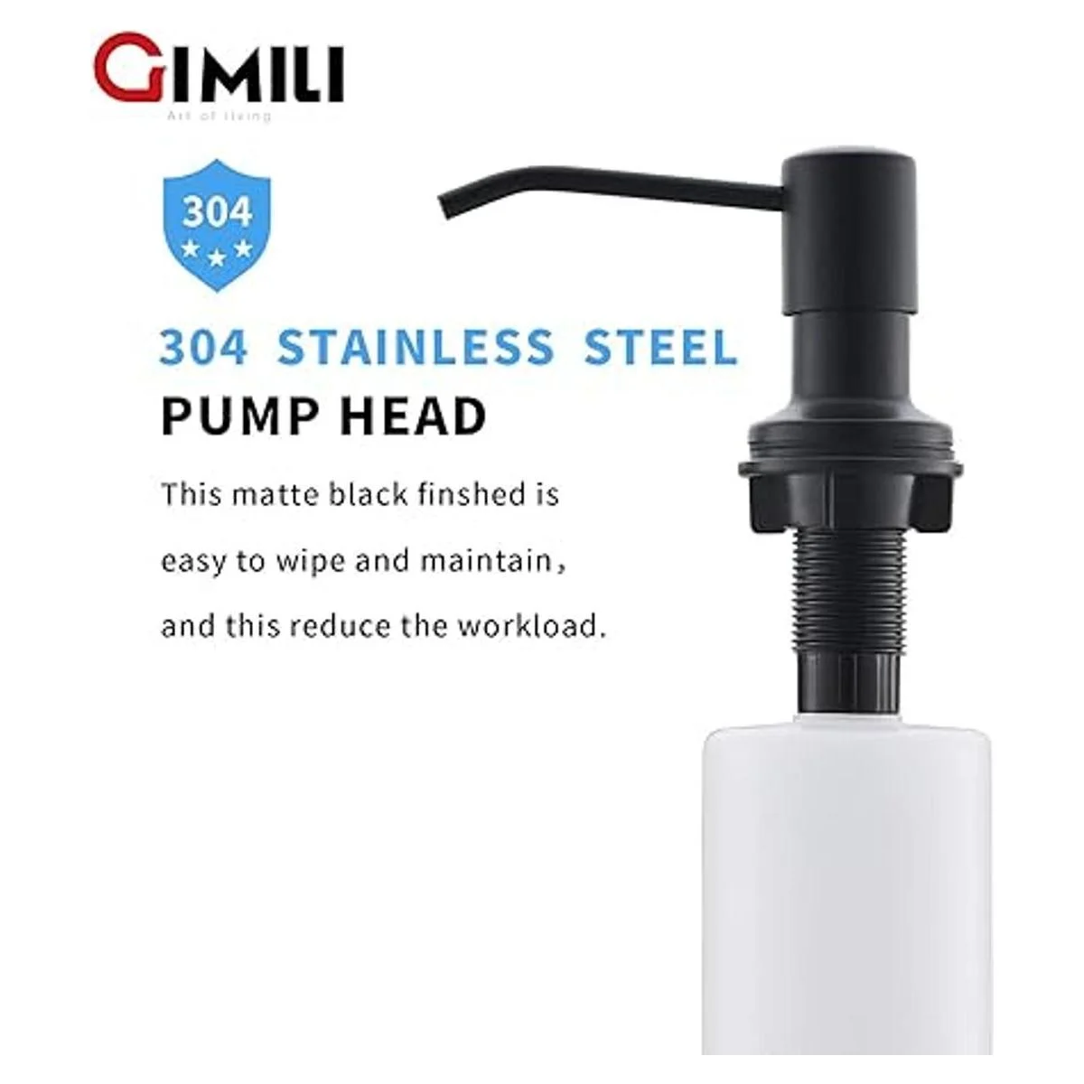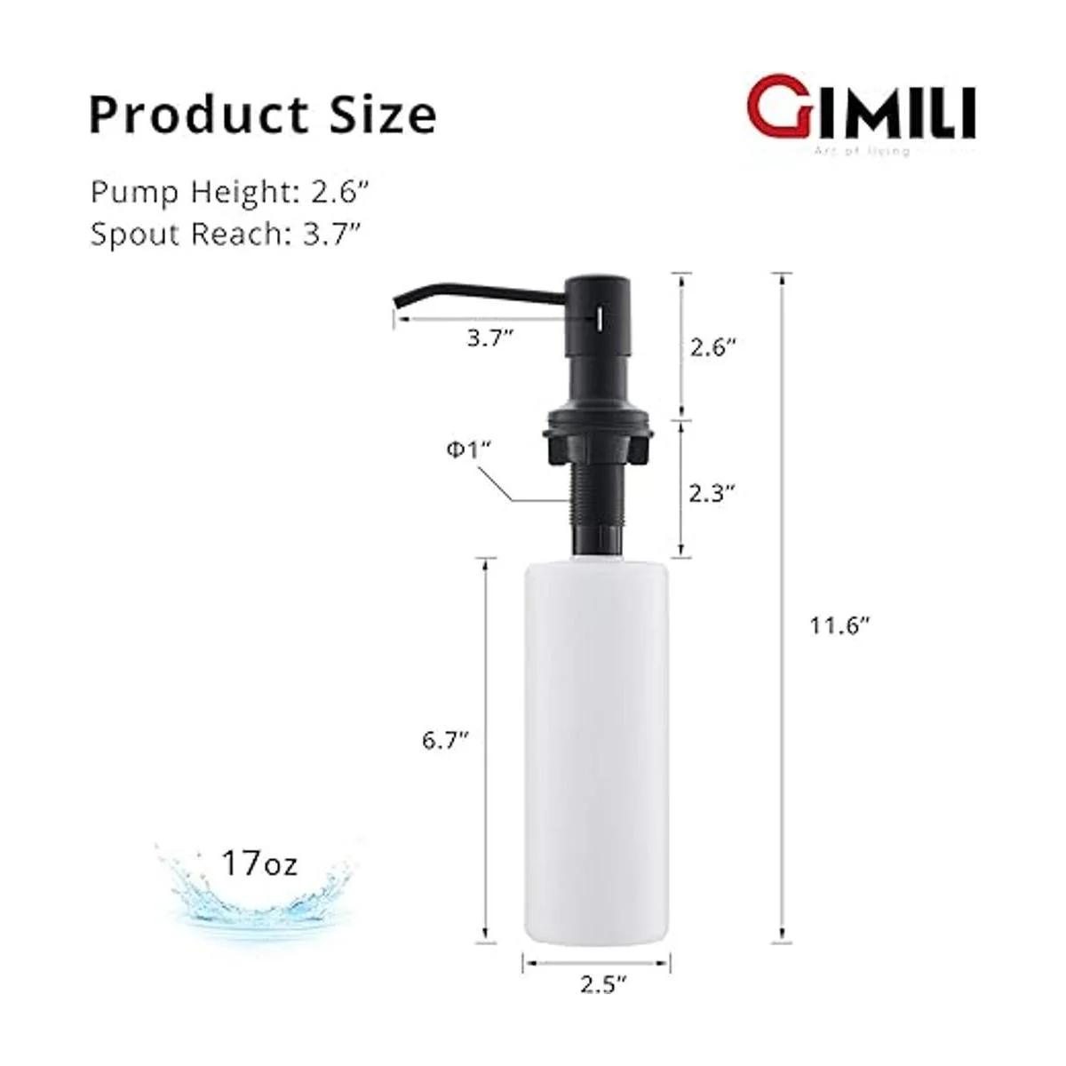 GIMILI Dispensador de jabón para fregadero de cocina o dispensador de loción para fregadero, cabeza de bomba ABS negro mate, con botella de jabón grande de 17 onzas