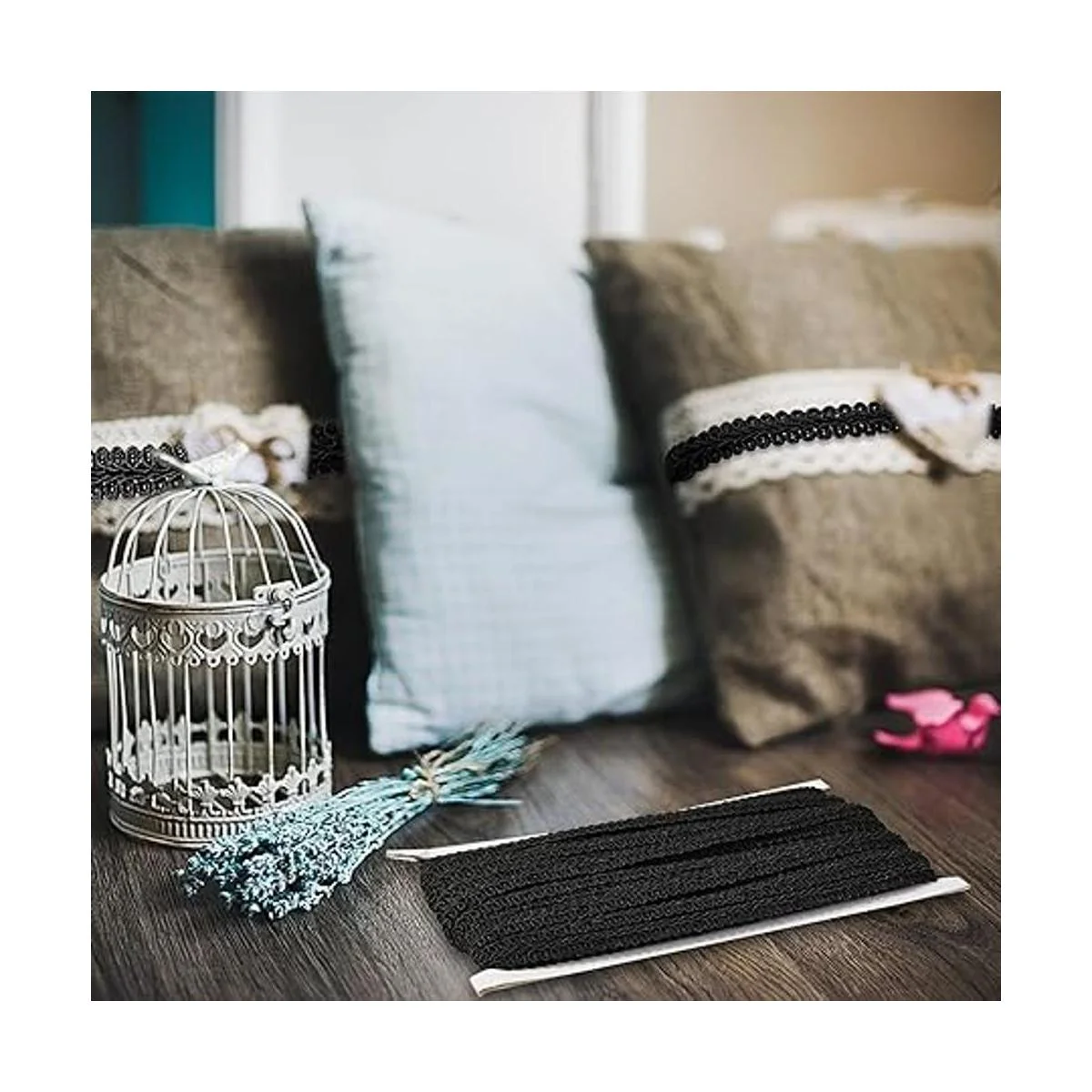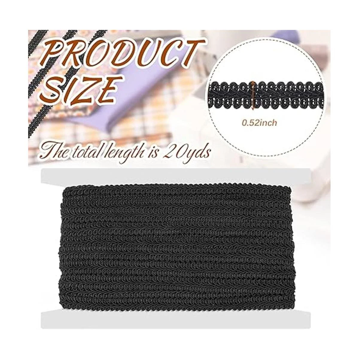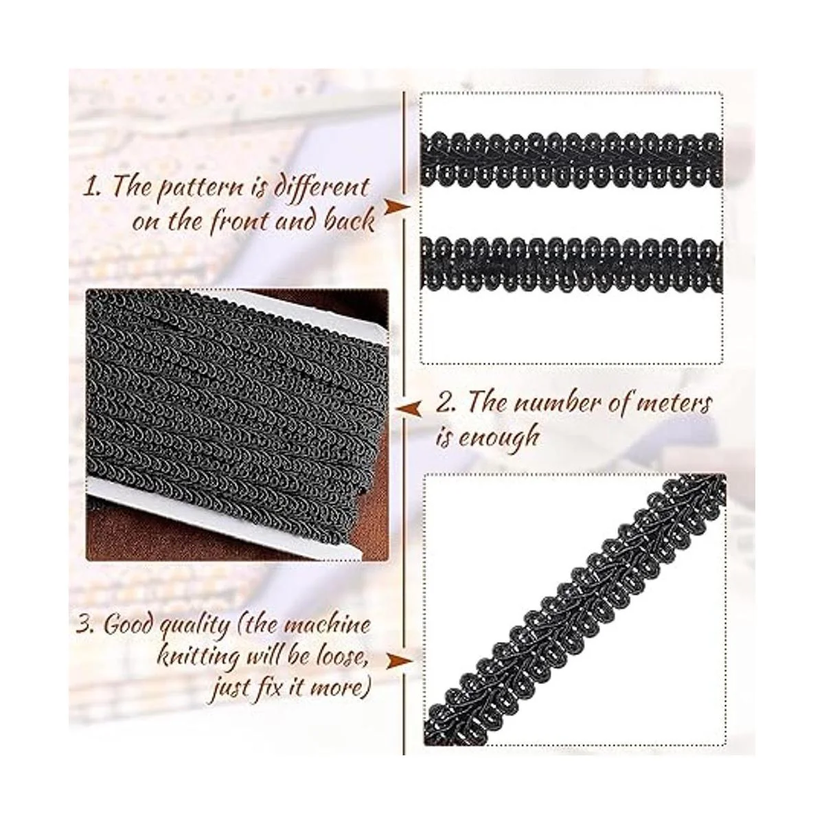 Gimp Trenza de poliéster tejido trenza Trim Tapicería Trim Decorativo Gimp Trim para disfraz DIY Artesanía Cortina de Costura Slipcover Decoración Joyería Fabricación Accesorios de Traje Negro
