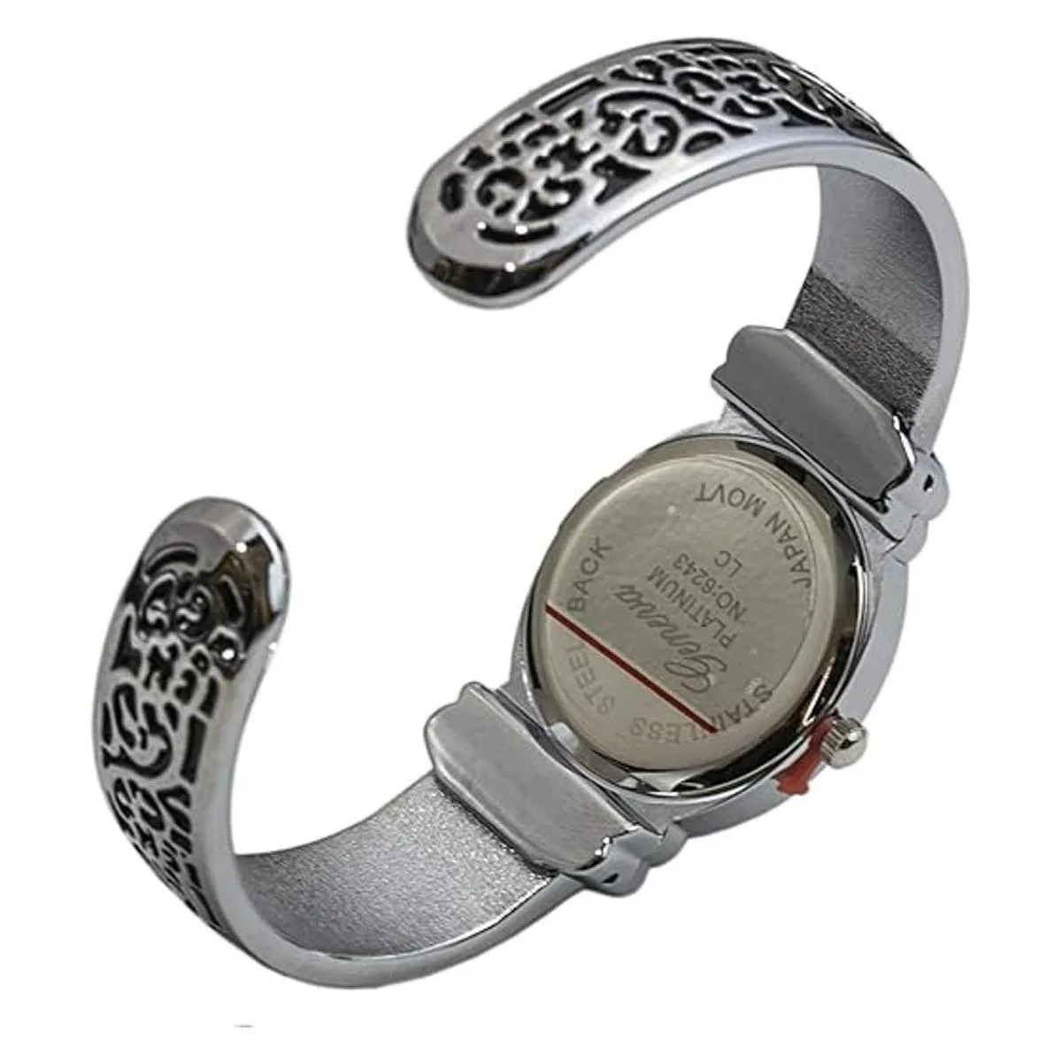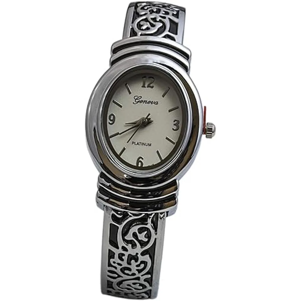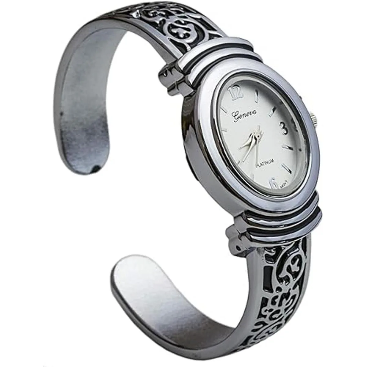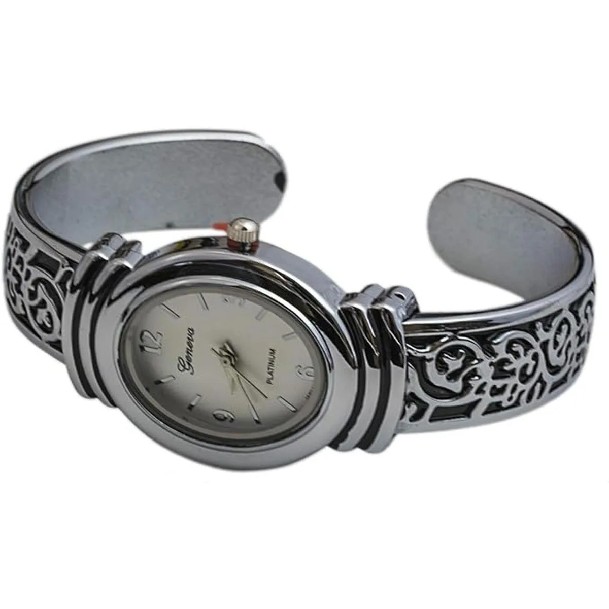 Este hermoso reloj de pulsera de moda con diseño de desplazamiento oxidado para mujer está articulado para fácil poner y quitar. La banda mide aproximadamente 0.492 in de ancho y la superficie de la cara mide aproximadamente 1.535 in x 0.984 in. Diámetro de la correa: 2.244 in, redonda: 165 mm 6,5 de ancho: 0.492 in Tiene una hermosa esfera blanca y es analógica con un movimiento de cuarzo. Este artículo contiene metal base. ADVERTENCIA No podremos proporcionar una atención al cliente adecuada o precisa para tales compras. Los artículos que compras fuera de iZZYZX pueden ser diferentes de sus originales en formas como estilo, ajuste, material, color y/o calidad.