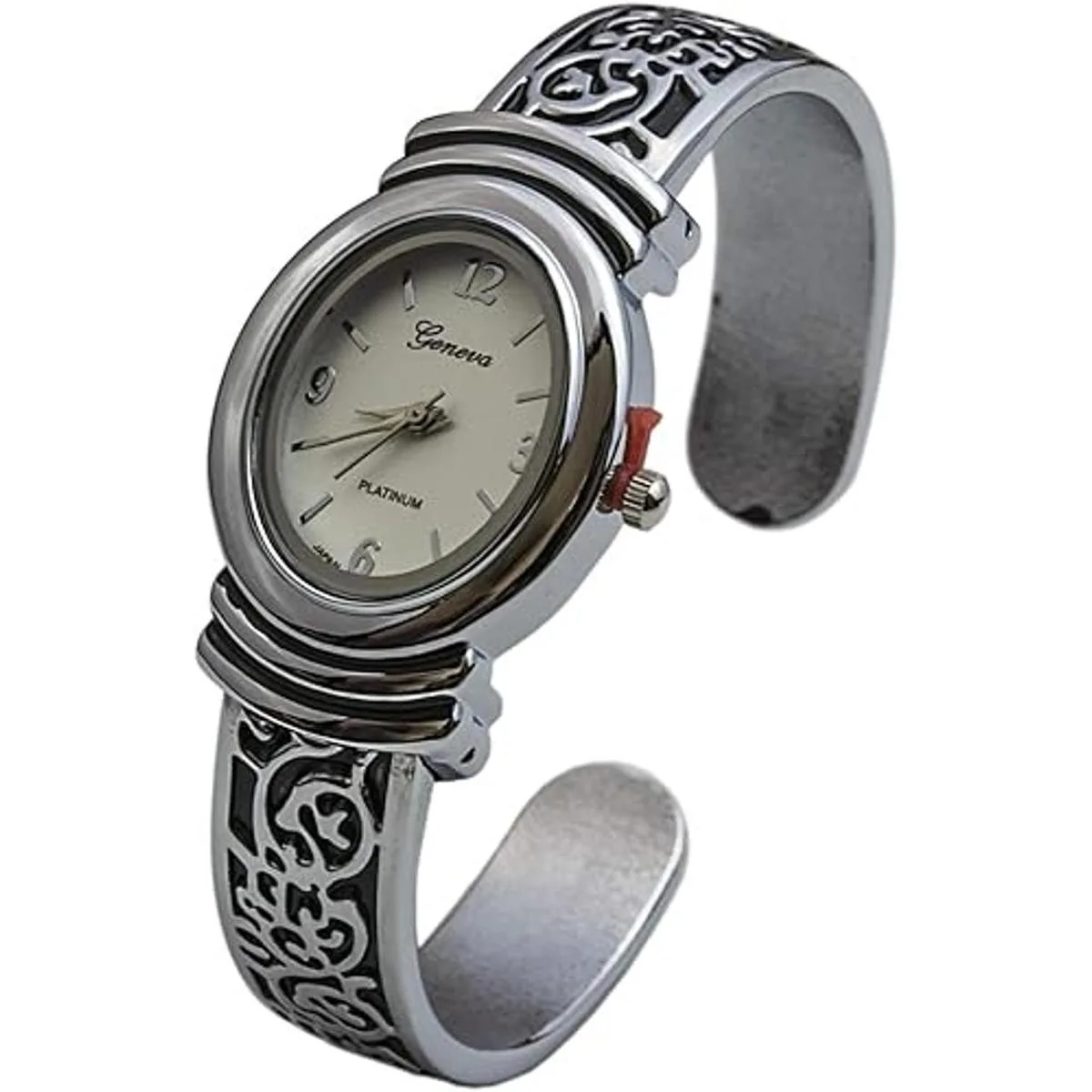 Ginebra mujer oxidada diseño de desplazamiento con bisagras moda brazalete reloj esfera blanca W9132