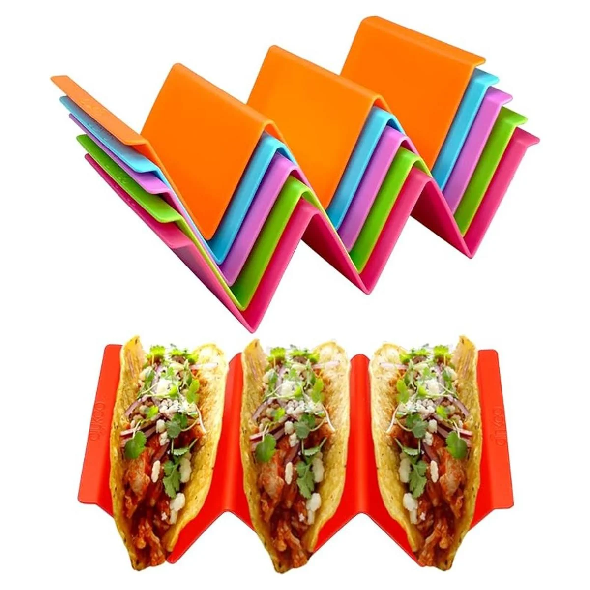 Soporte para tacos: viene con una hermosa caja colorida. Ideal para martes de tacos, cafetería, restaurante, zonas de autoservicio, fiesta, cumpleaños, regalo, Navidad, niños, hogar, evento, patio, picnic y otros usos al aire libre.