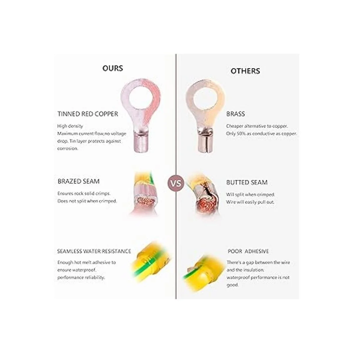Relación de contracción 3:1. Adhesivo dentro del aislamiento que sella firmemente contra el cable para ayudar a hacer la conexión firmemente, lo que a su vez ayuda a prevenir la corrosión.