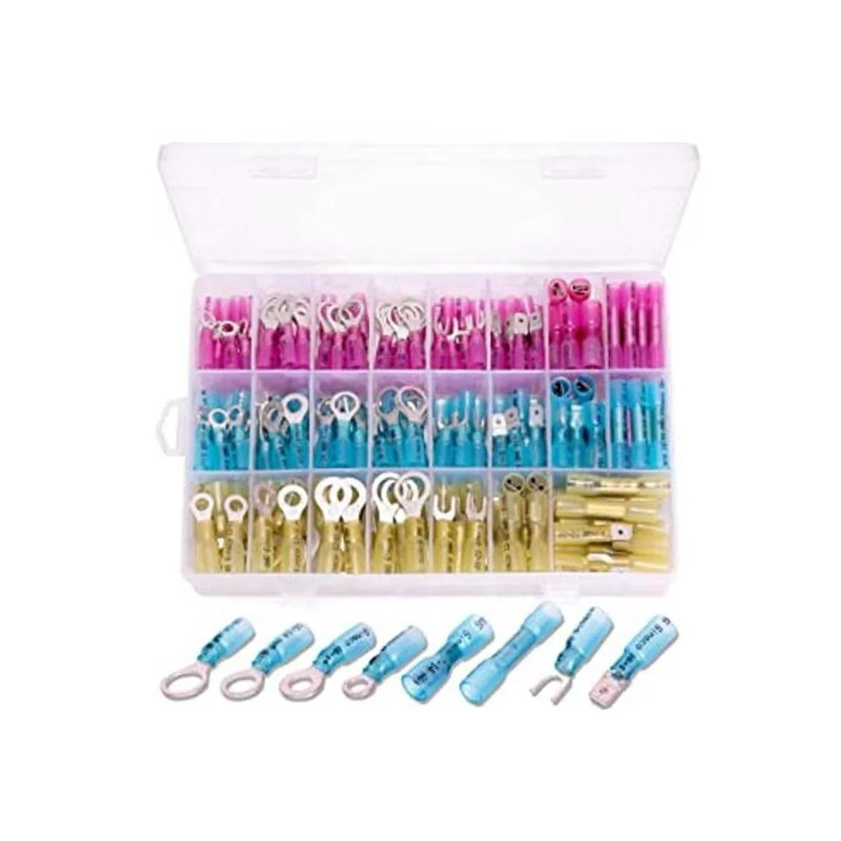 Ginsco Juego de 250 piezas de conectores de alambre termoencogible, kit de bricolaje de terminales automotrices marinos impermeables