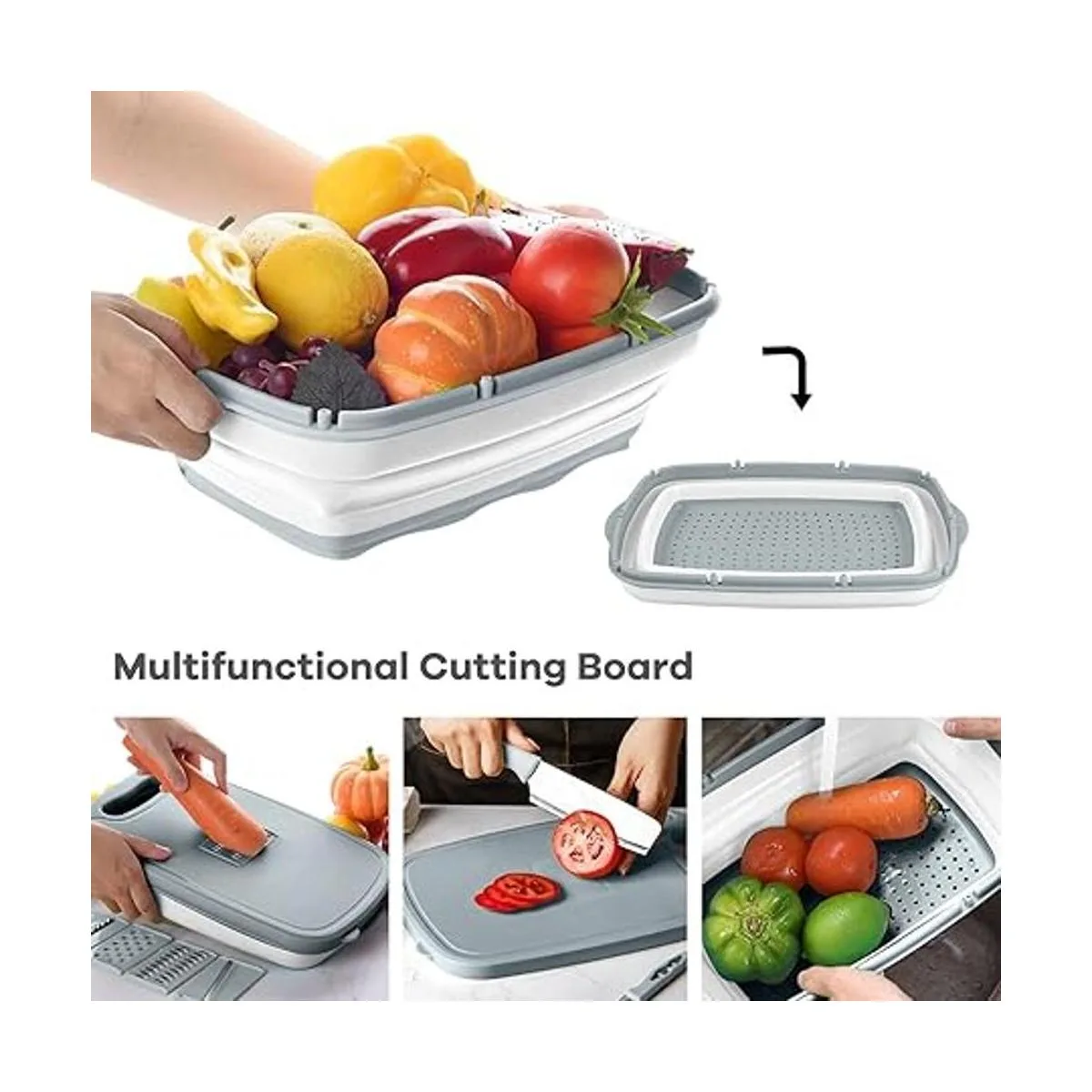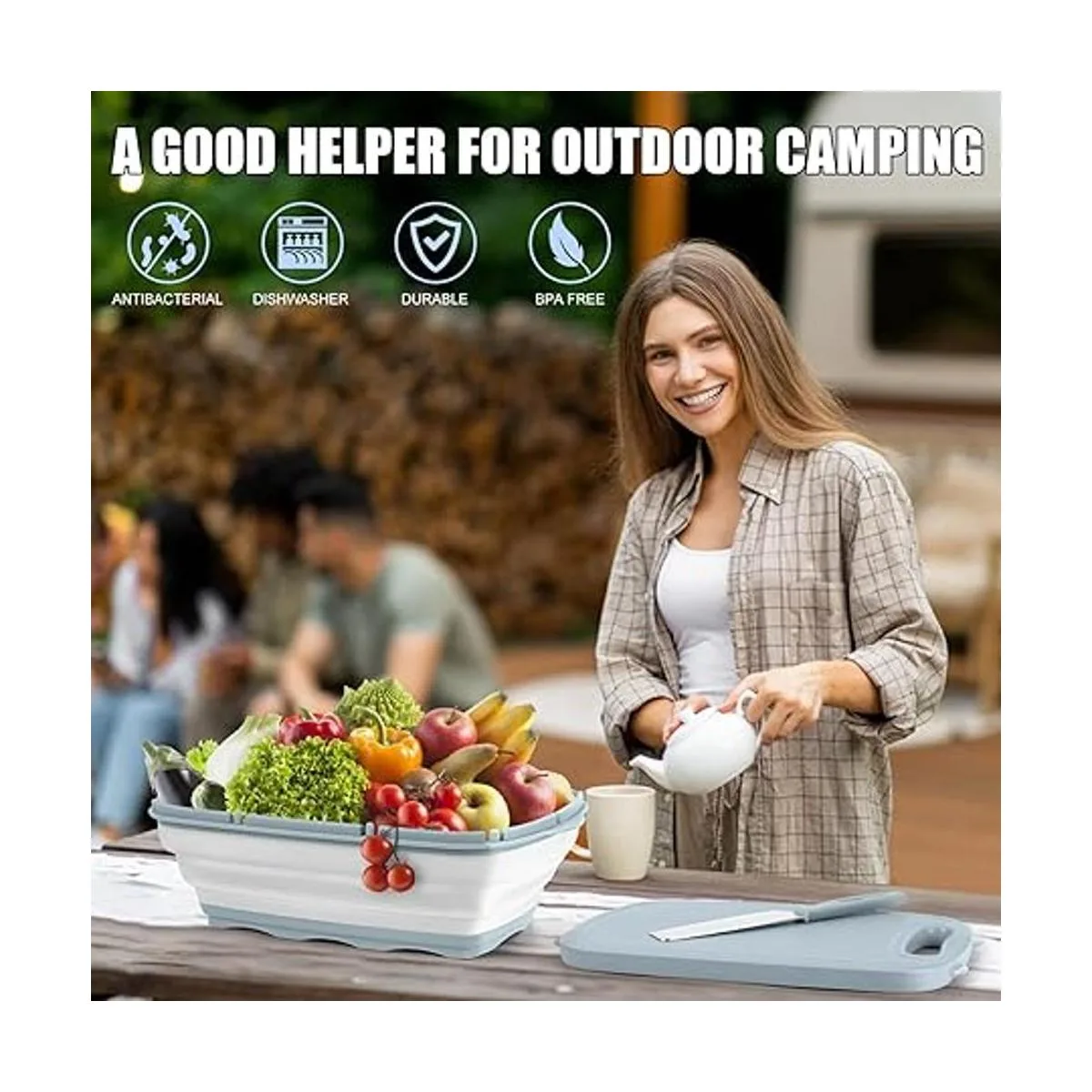 Gintan Tabla de cortar para campamento, tabla de cortar plegable 9 en 1 con colador, regalos de campamento para campistas, accesorios de campamento para autocaravanas felices, accesorios de campamento para autocaravanas gris