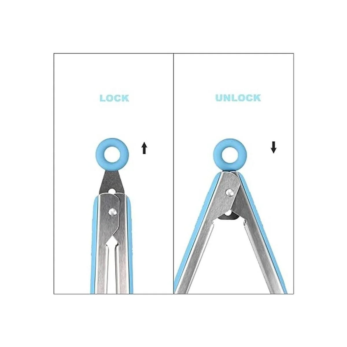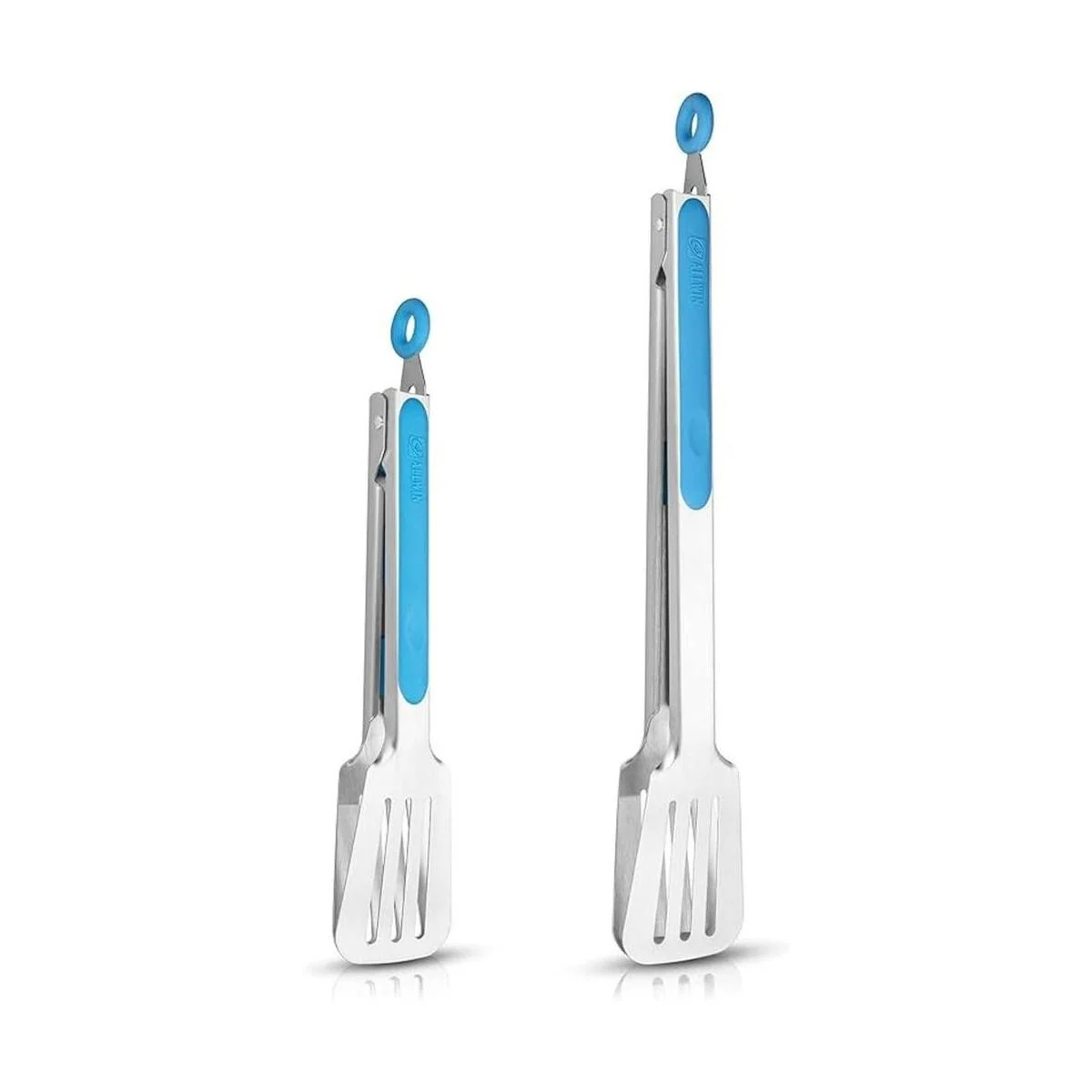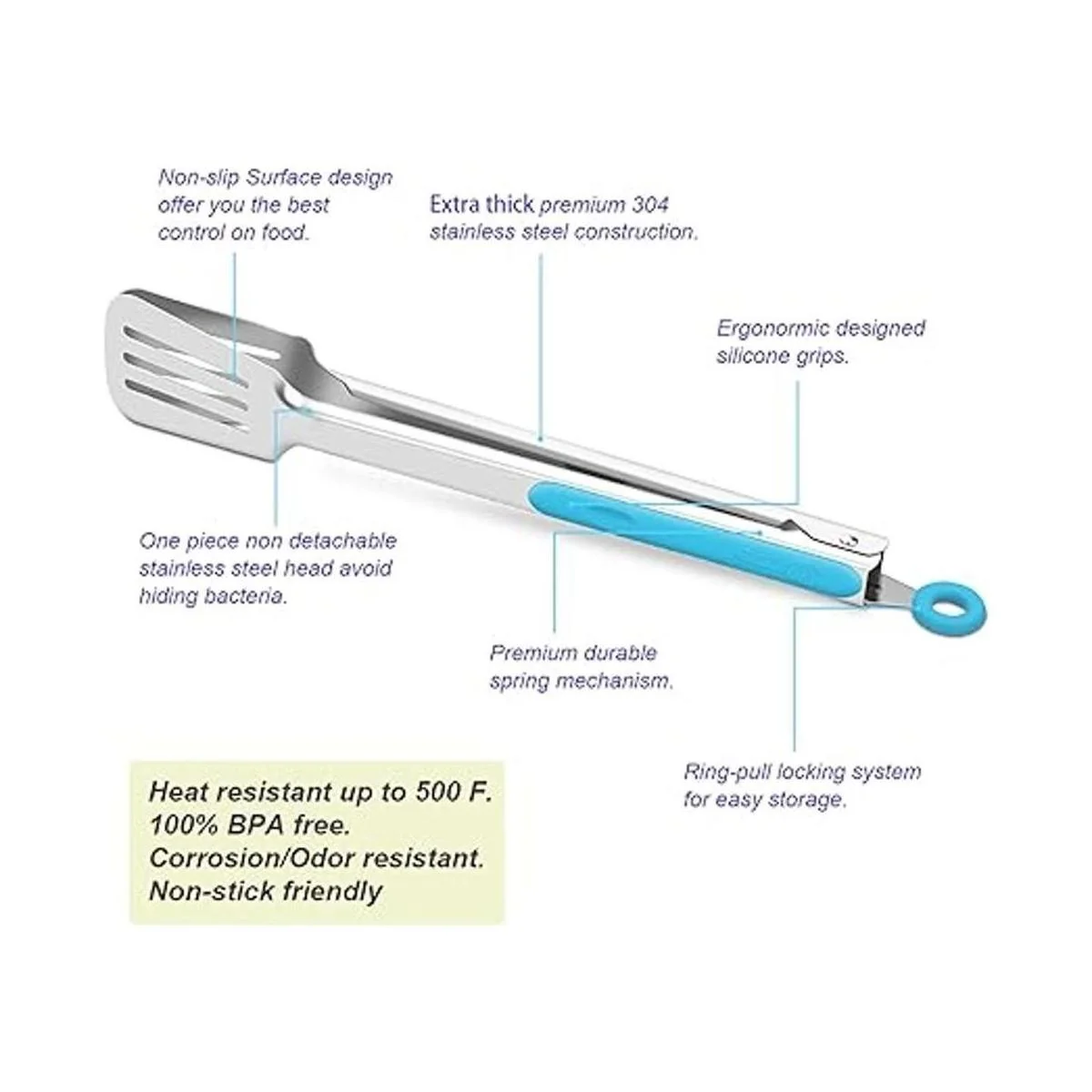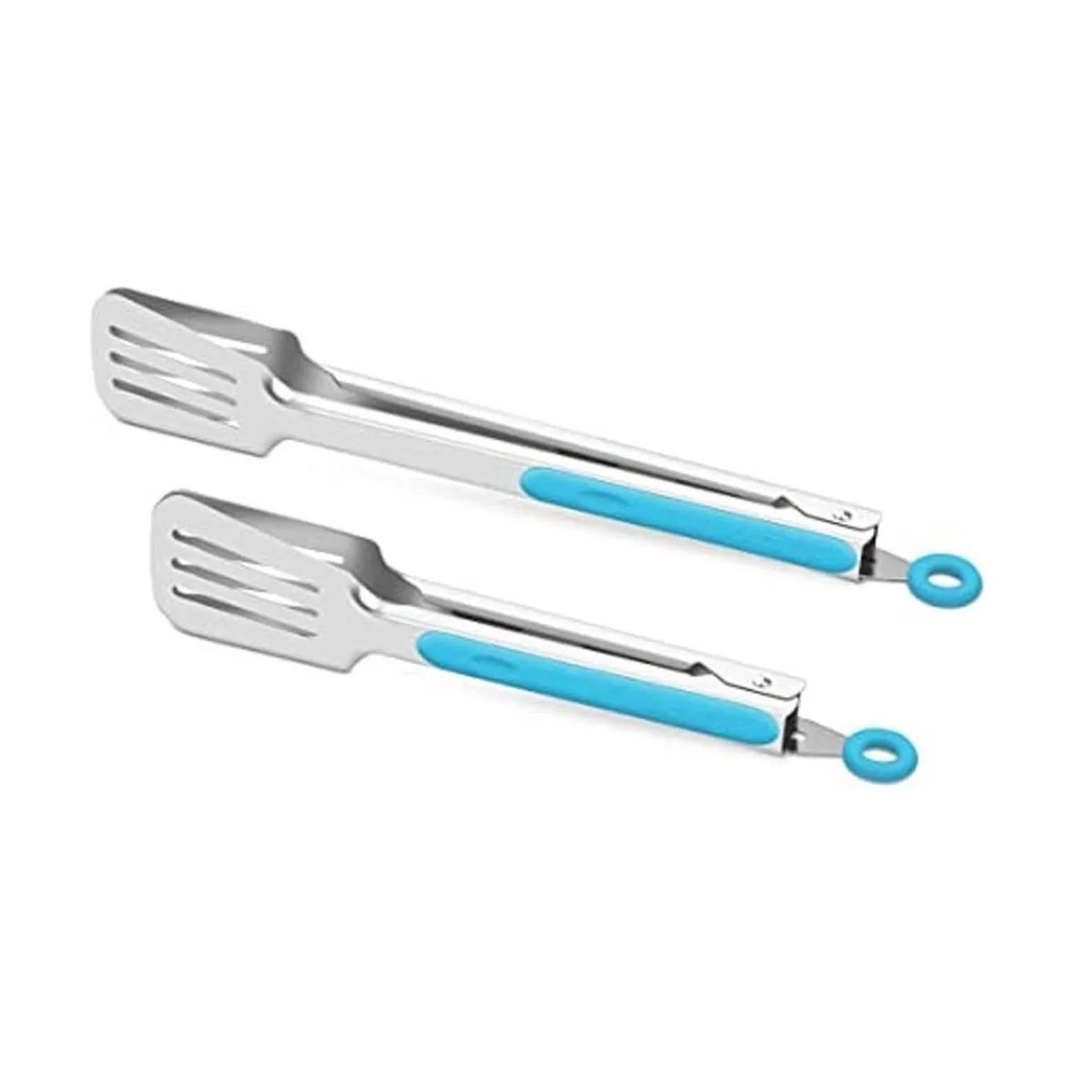 Giradores de barbacoa de acero inoxidable 304 de alta calidad, resistentes antiadherentes, pinzas de cocina, 9 y 12 pulgadas, color azul