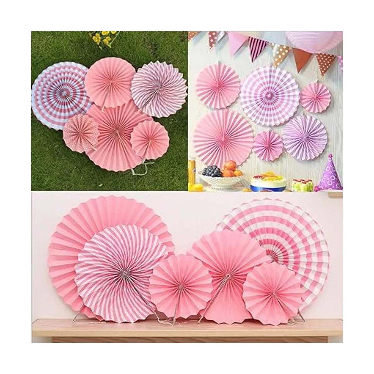 Fiesta Pink Hanging Paper Fan Flower for Girls Birthday Party Decoration: 6 PCS: Size 8in, 12in, 16in, each size 2 PCS in the package, 6 PCS hanging paper fans in the package, Made by tissue paper, Paper fan can hang or decorate on the wallUse it for Baby Shower Wedding Party Girls Birthday Decoration.