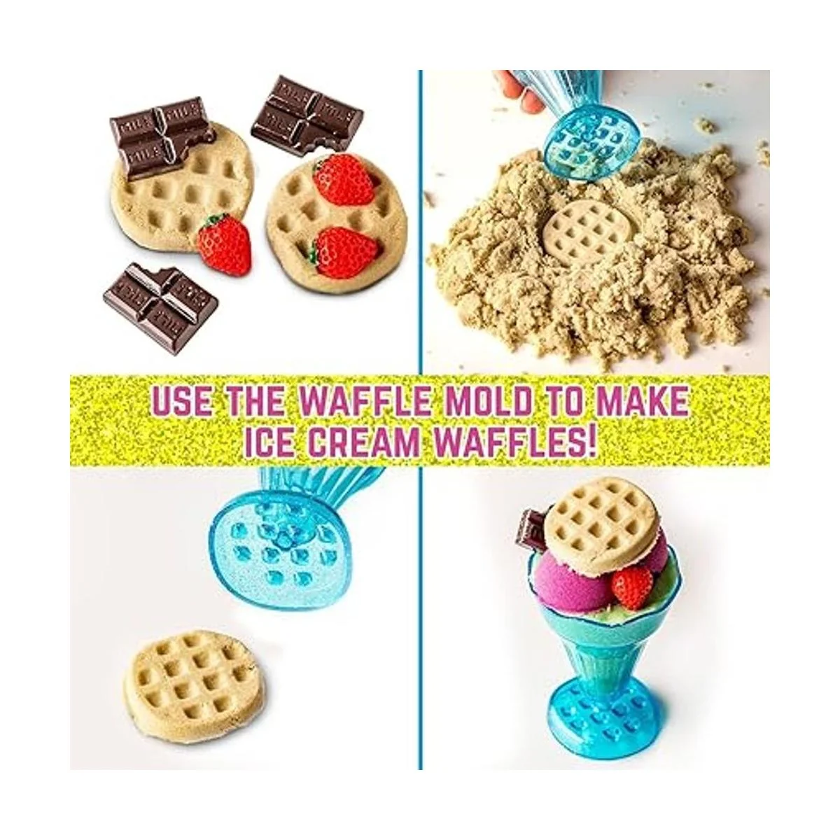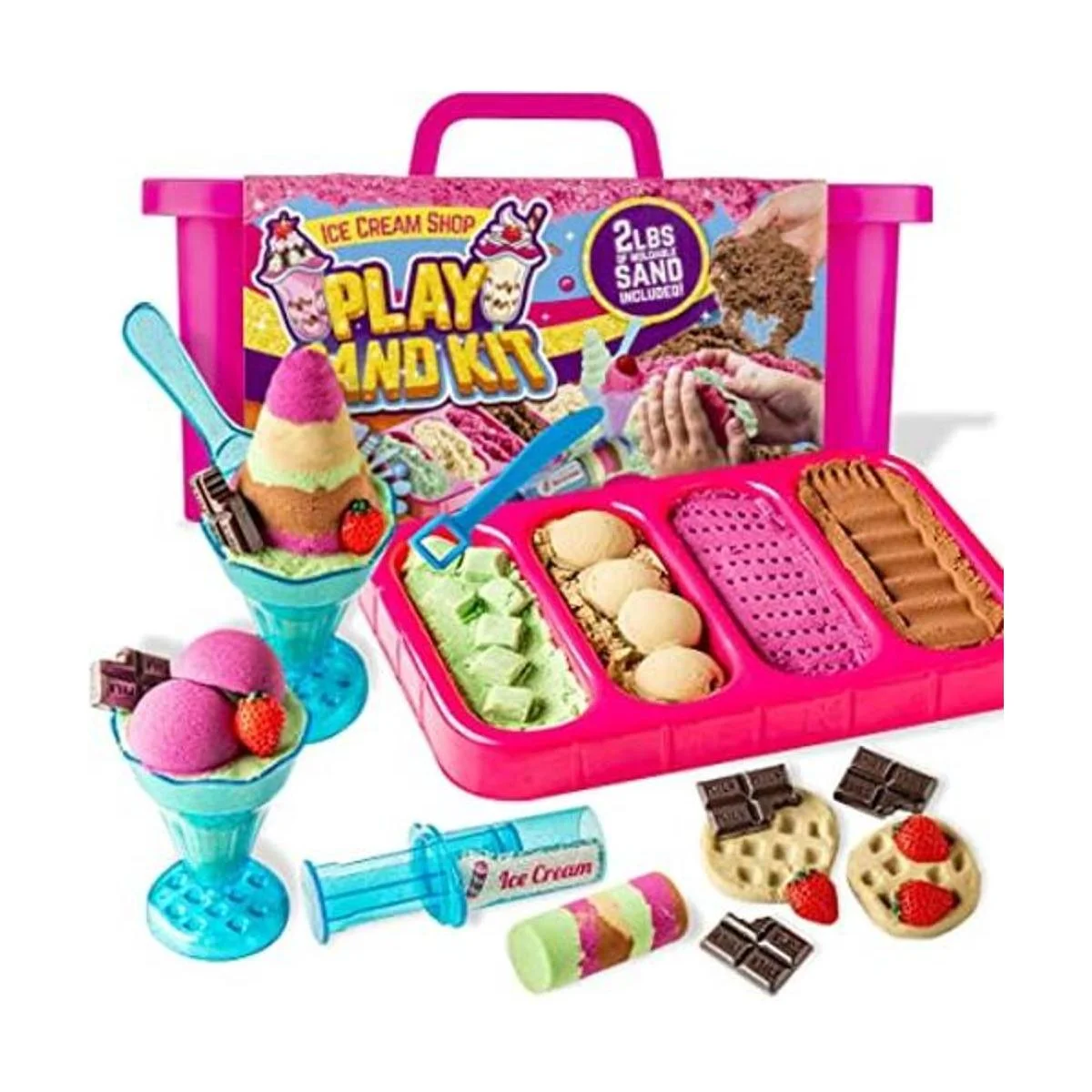 GirlZone Ice Cream Shop Arena de juego para niños, kit completo de arena para niños con 6 piezas de juguete de helado de arena y 2 libras de arena sensorial en todos los colores que necesitas, juguetes sensoriales divertidos para niños e idea de regalo de cumpleaños