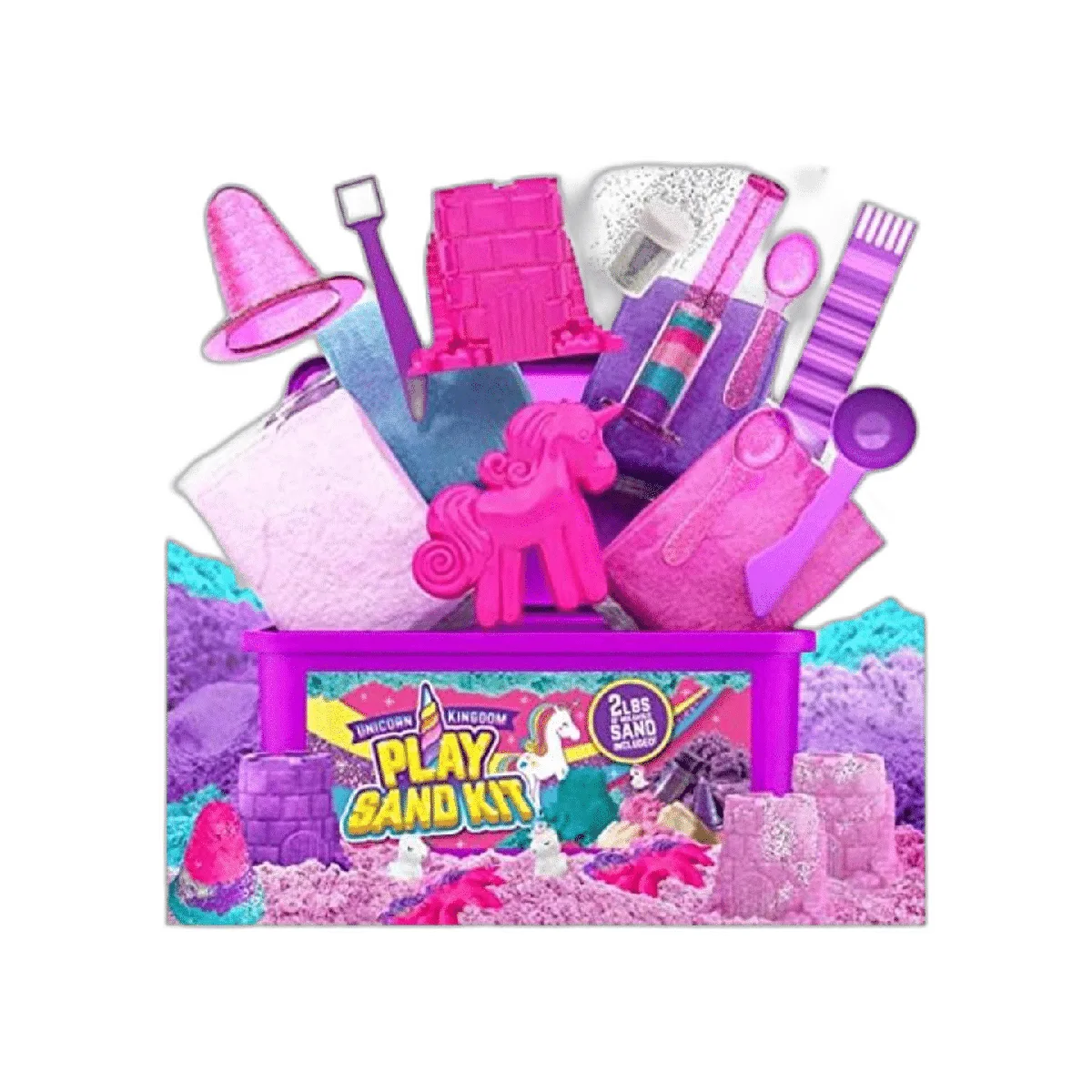 GirlZone Unicorn Kingdom Kit de arena, 2 libras de arena blanda, 7 herramientas de juguete de arena y más en una divertida funda de transporte, regalos de Navidad para niños y manualidades de Navidad para niños