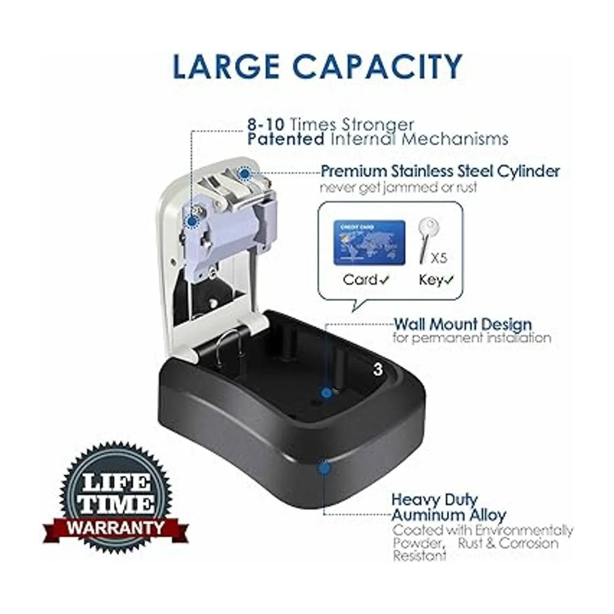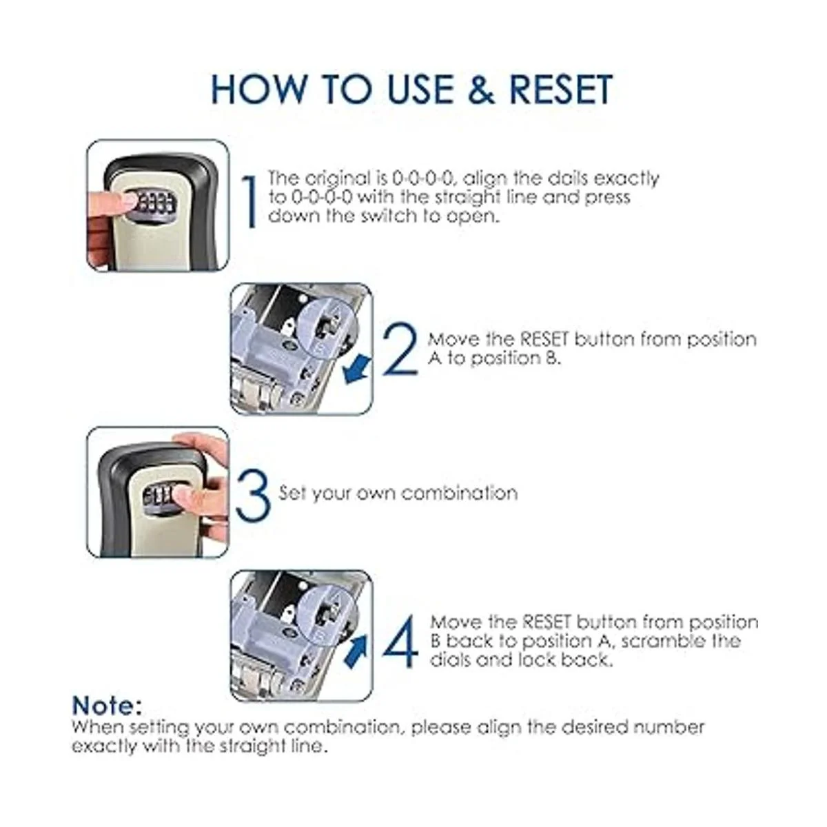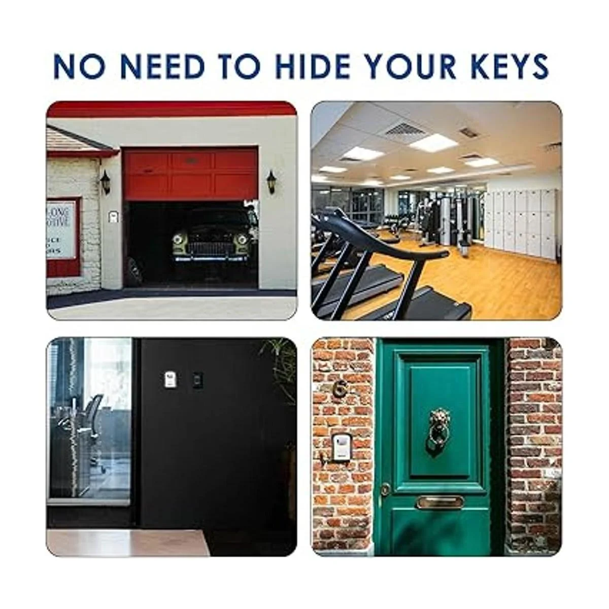 Combinación de 4 dígitos: esta caja de bloqueo de llave de combinación de 4 dígitos ofrece 10.000 combos, fácil de leer, recordar y restablecer, adopta mecanismos internos patentados, 810 veces más fuerte que los originales, nunca se atasca ni se oxida. Ya no hay necesidad de ocultar tus llaves debajo de la alfombra o maceta.