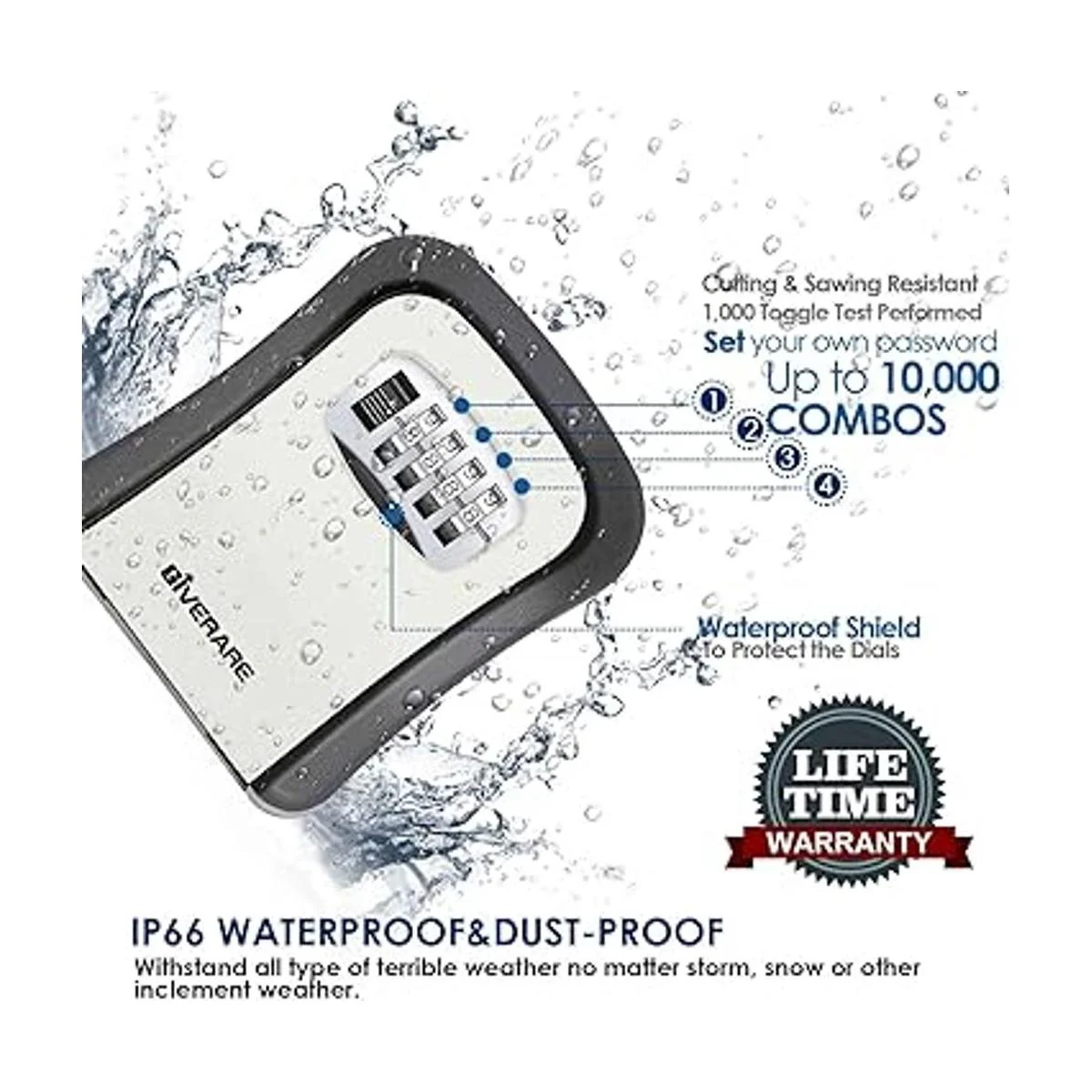 Alta seguridad: cada caja de bloqueo de llave GIVERARE está sólidamente construida con aleación de aluminio resistente de alta calidad recubierta con polvo ecológico, anticorrosión y resistente al agua, así como resistente al martillo, serrado y corte. Viene con una cubierta a prueba de polvo para proteger los diales de condiciones climáticas impredecibles.