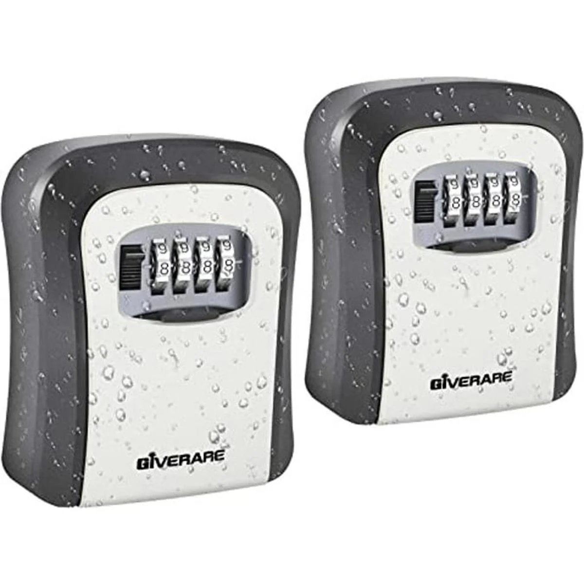 GIVERARE Paquete de 2 cajas de bloqueo de llaves, montaje en pared, combinación de 4 dígitos en el exterior, protector de llaves impermeable para exteriores para llave de casa, caja de seguridad con kit de montaje y cubierta a prueba de polvo, color gris