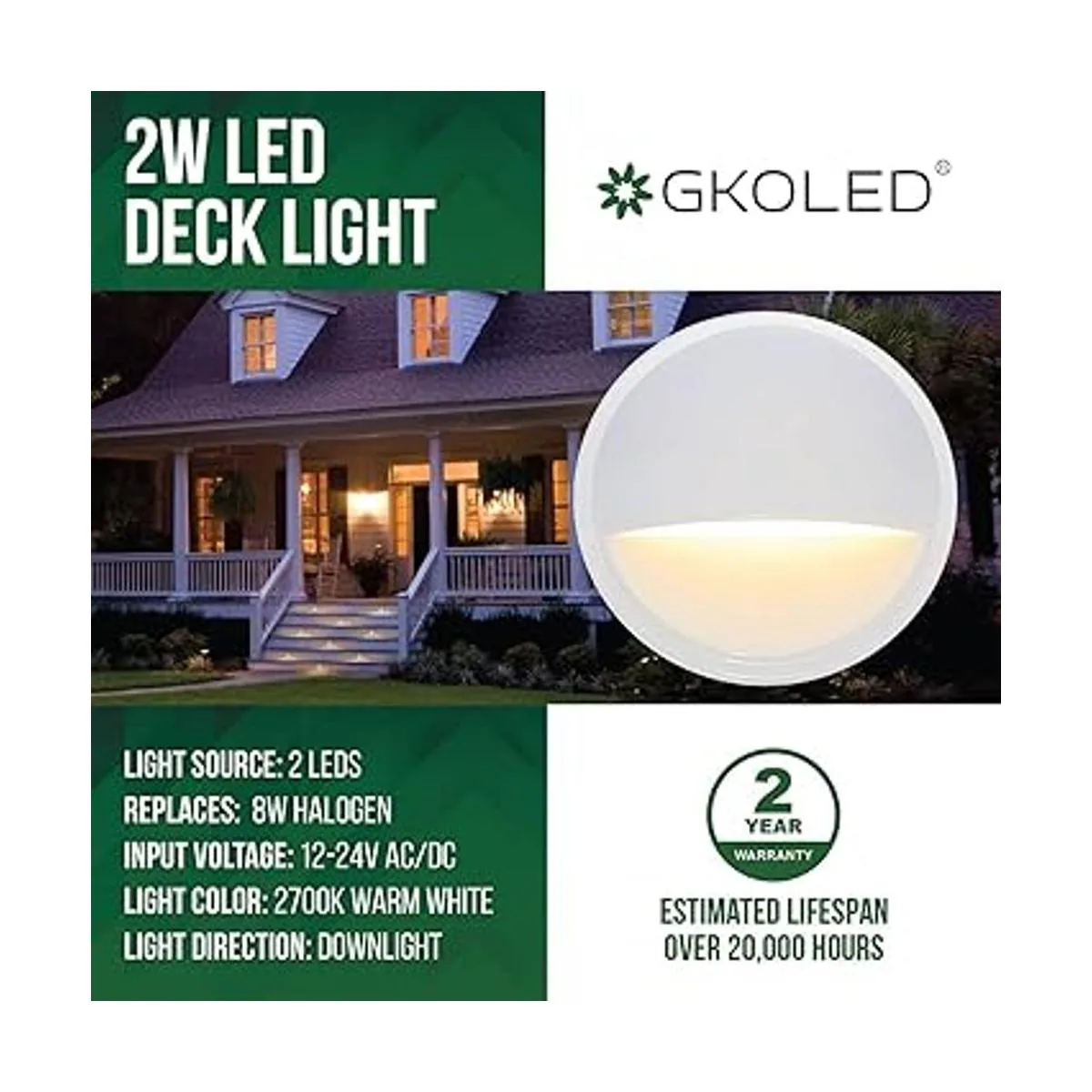 GKOLED Luz de cubierta de paisaje, iluminación de patio para exteriores de bajo voltaje de 12 V ACDC, luz LED de 2 W, aluminio fundido a presión con aspecto de polvo blanco, paquete de 6