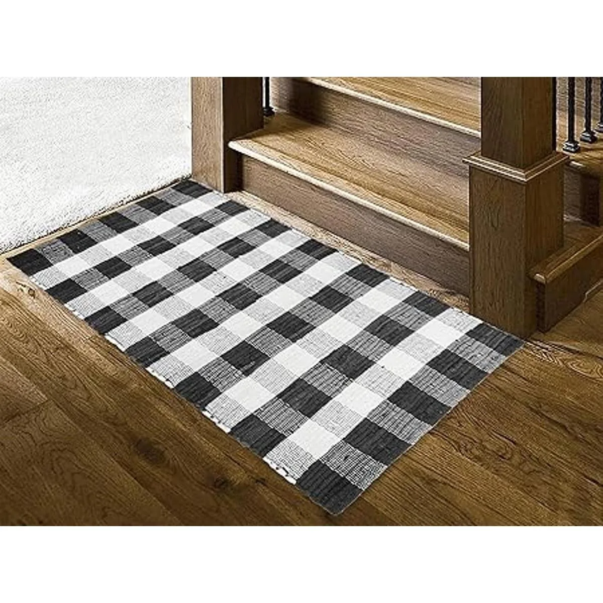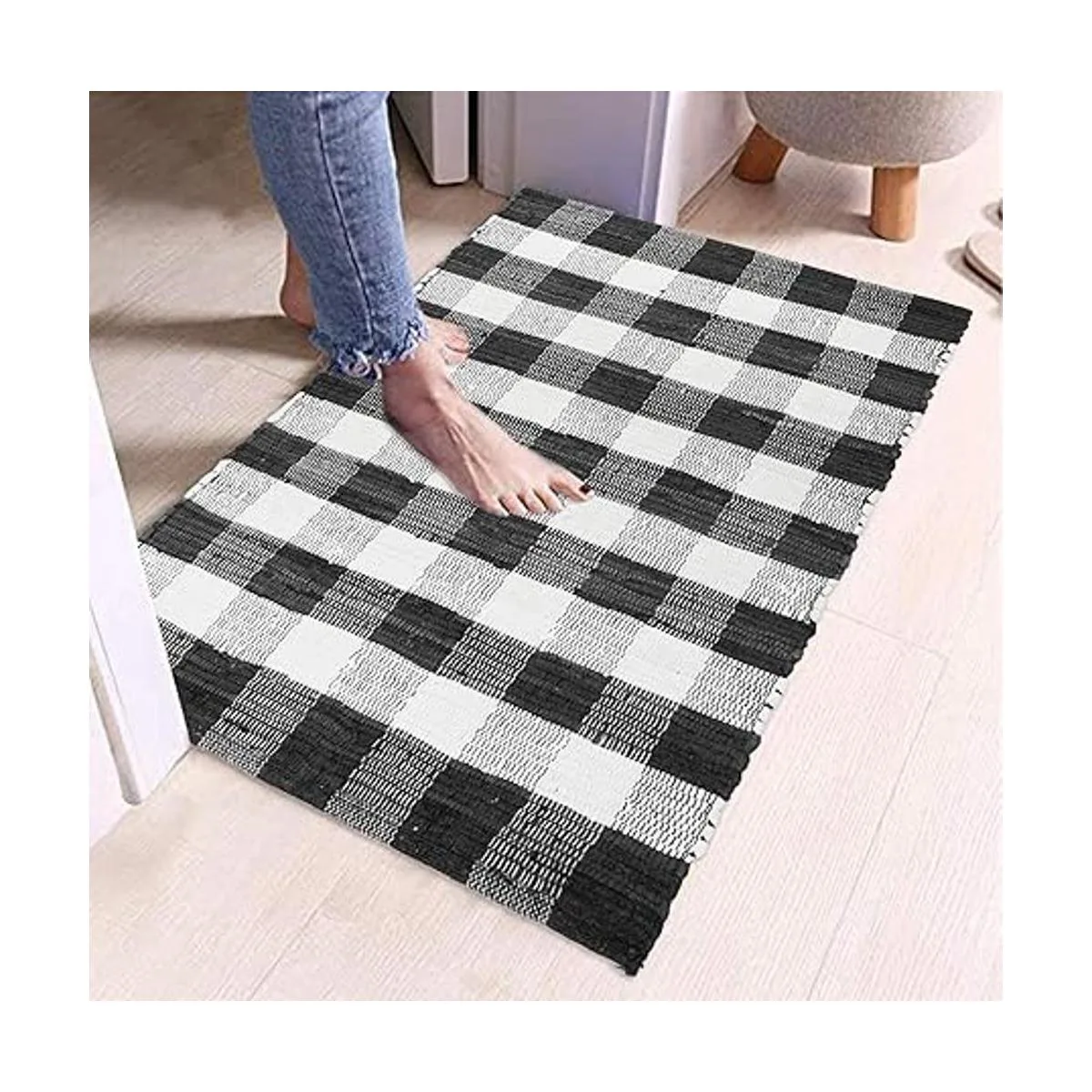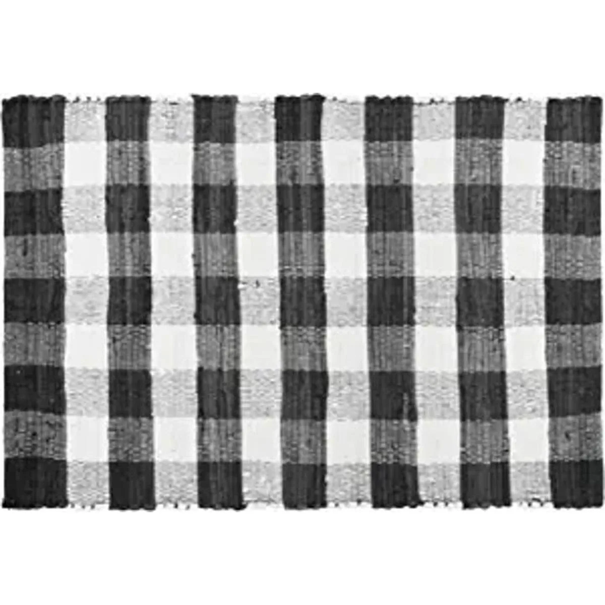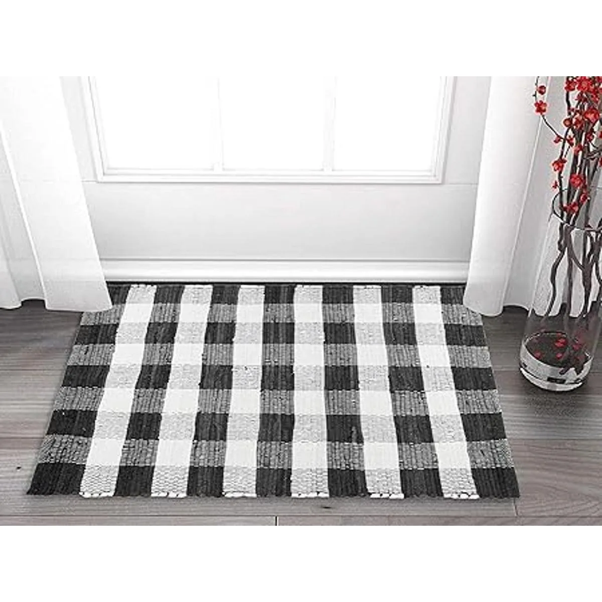 GLAMBURG Alfombra de algodón a cuadros a cuadros lavable, tejida a mano, alfombra de bienvenida de 18 x 30 pulgadas, alfombra para cocina, baño, porche, lavandería, sala de estar, alfombra reversible de granja, color negro y blanco