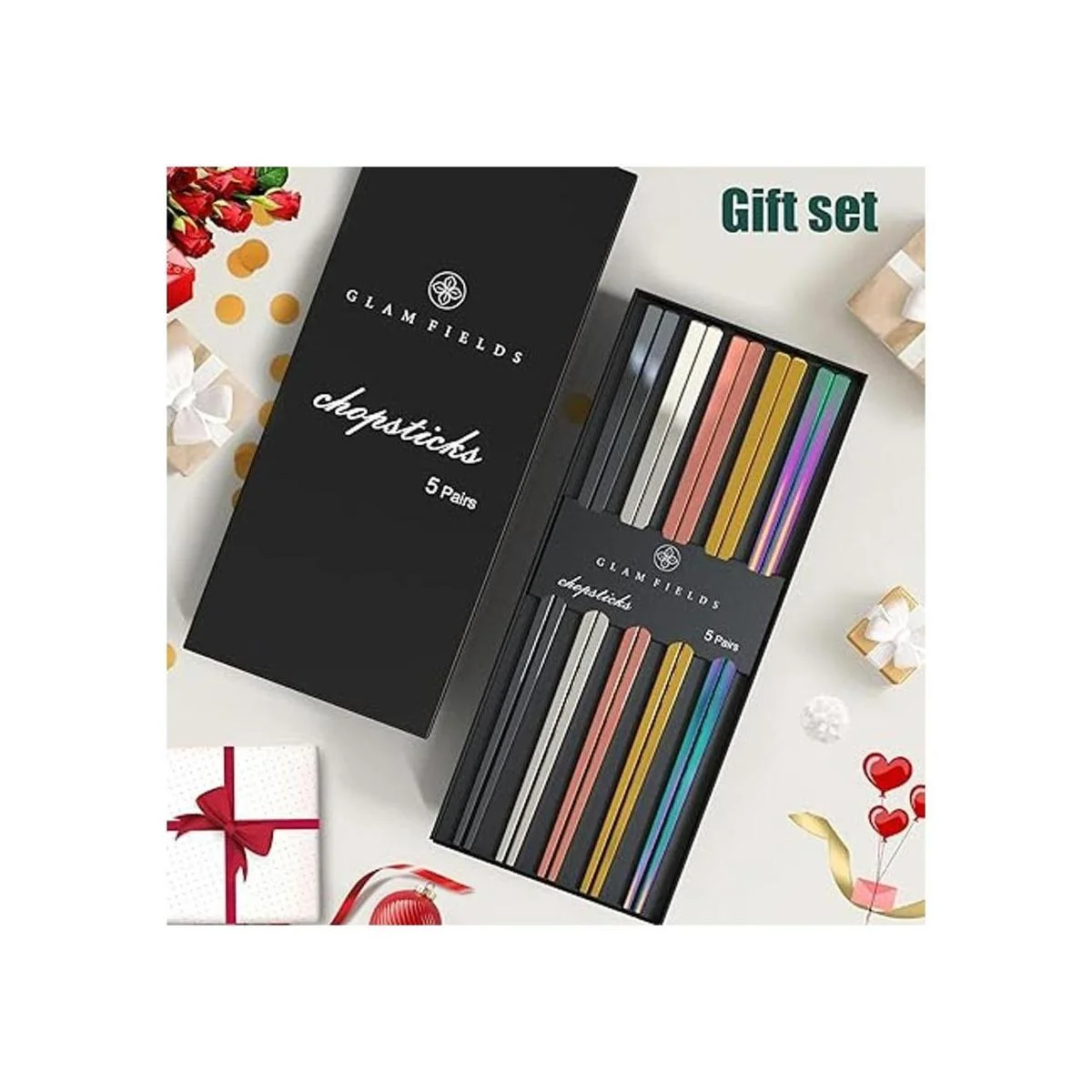 Paquete múltiple y juego de regalo: con cinco pares de palillos de metal en diferentes colores, cada miembro de la familia puede elegir su propio color, que no solo es fresco y lindo, sino también higiénico y limpio. Empaquetado en una caja de regalo, los palillos Glamfields son la mejor opción para regalar.