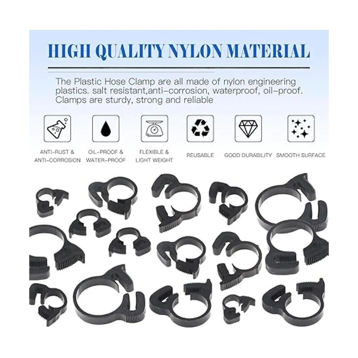 Durable Quality: All the hose clamps are made of nylon engineering plastics, which with high strength and high hardness, strong corrosion resistance. Durable enough for long time service than nomal plastic clamps.