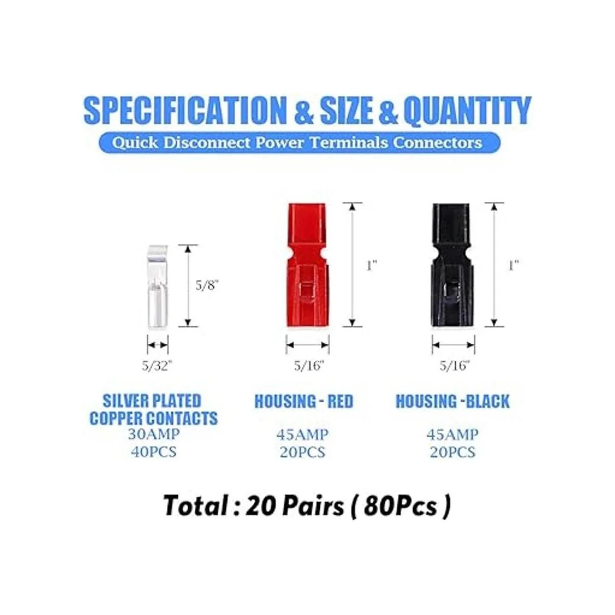 Glarks 20 pares de 30 amperios de desconexión rápida conectores de terminales de alimentación, rojo negro de conexión rápida conector de batería modular conjunto de conectores de alimentación
