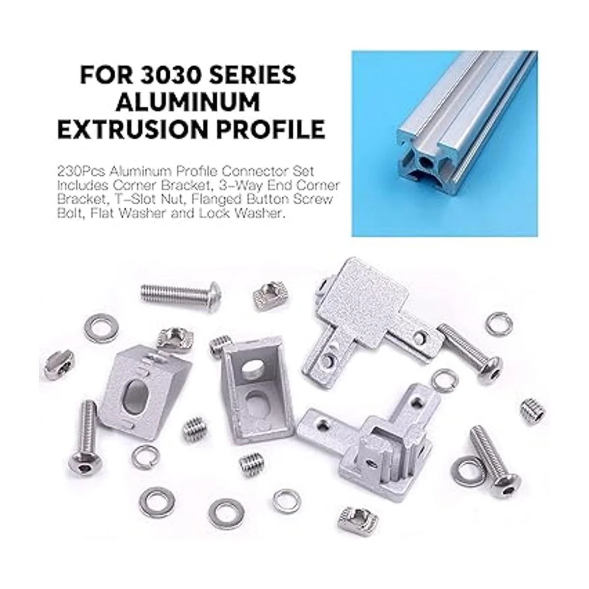 Glarks El juego de 216 conectores de perfil de aluminio de la serie 3030 incluye 20 soportes de esquina 3030, 40 tuercas M6 T, 4 conectores de soporte de esquina de extremo de 3 vías, tornillos de cabeza de botón M5 x 20 y arandelas planas