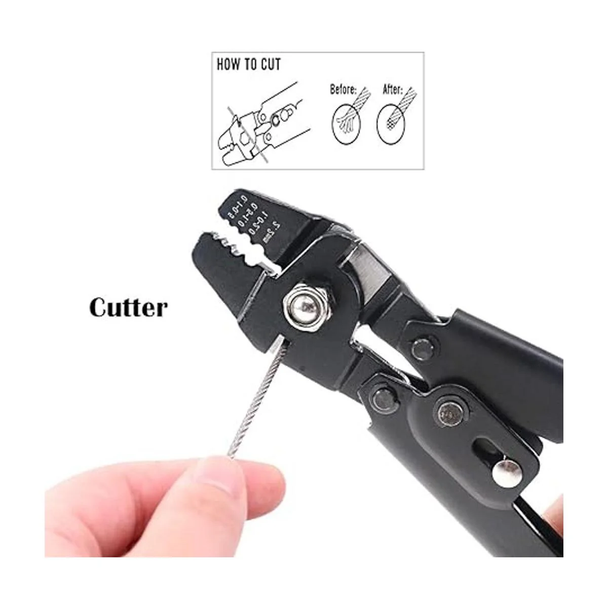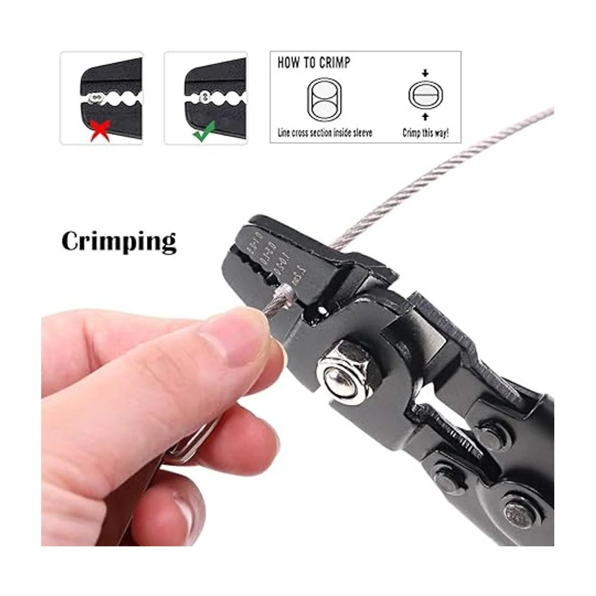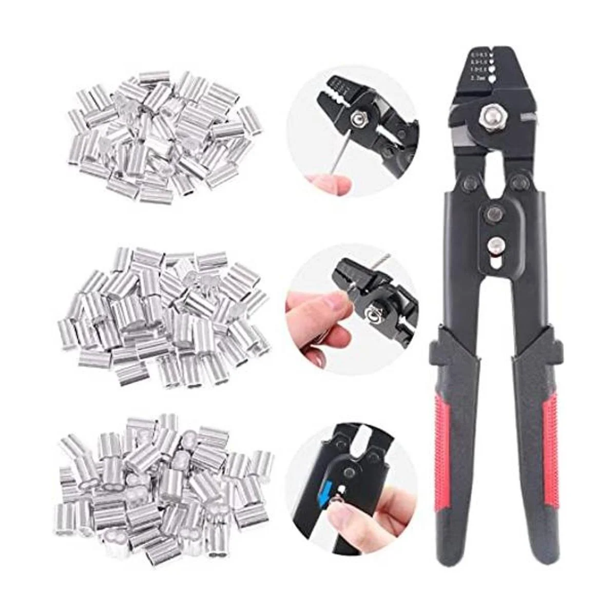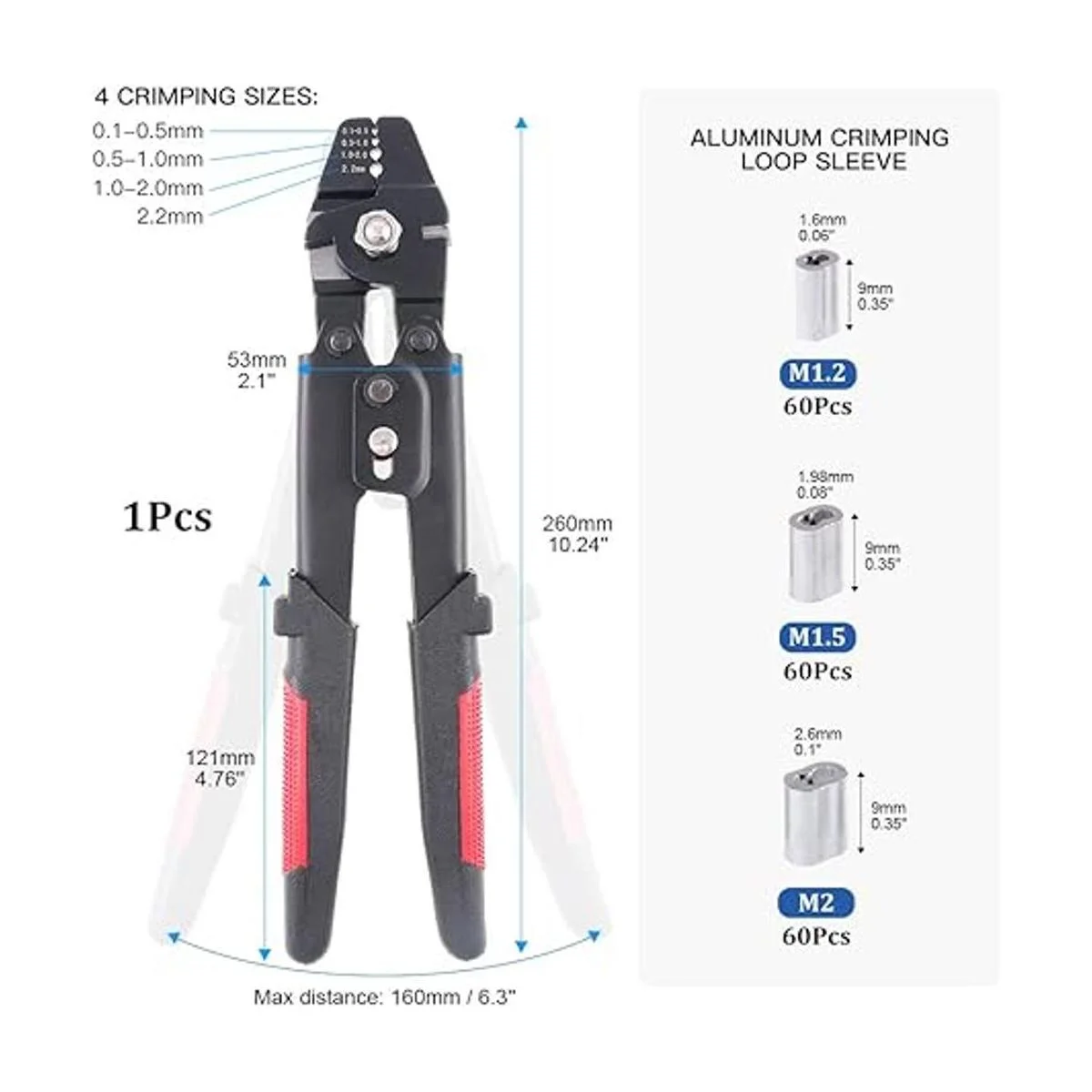Glarks Herramienta de crimpado de cuerda de alambre de hasta 0.087 in, herramienta de crimpado de cuerda de alambre con 180 piezas de aluminio de doble barril de 1.21.50.079 in