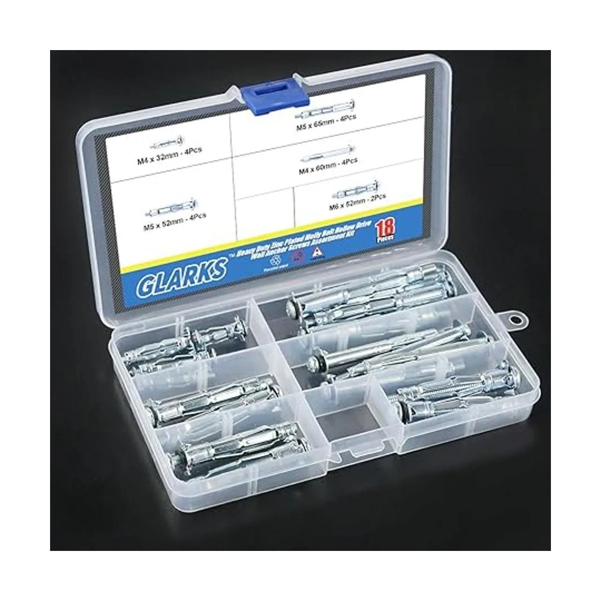 Glarks Herramienta de fijación de metal para anclaje de pared con perno Molly Hollow Drive Tornillos de anclaje de pared Kit surtido para fijación de cartón yeso