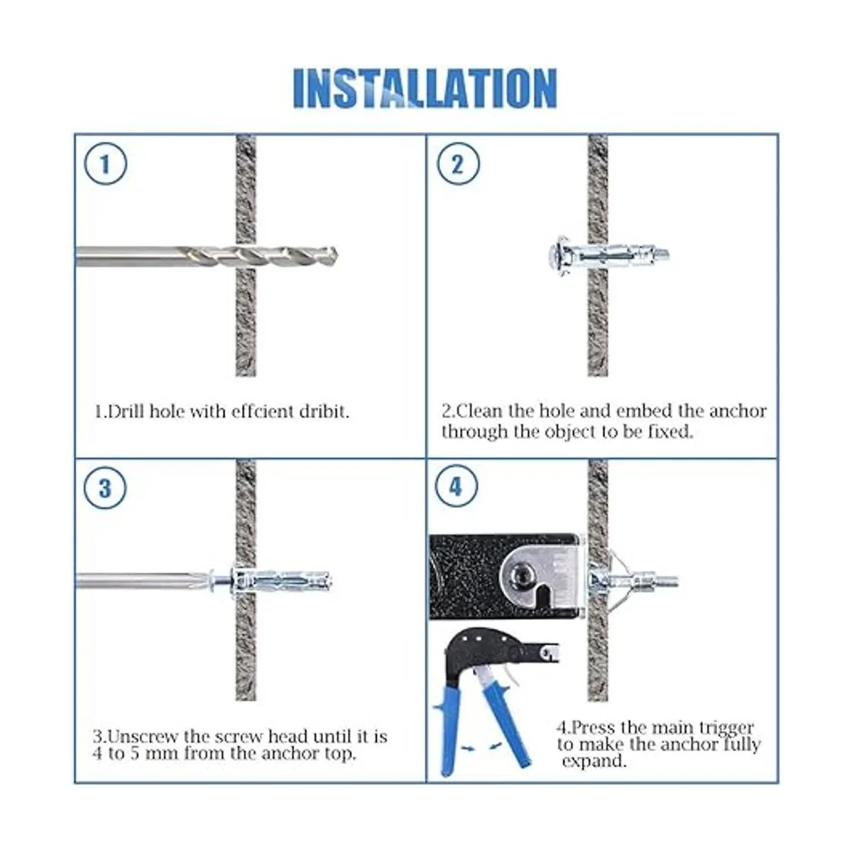 Material: la está hecha de metal sólido con agarres de goma antideslizante y protector antideslizante. Los pernos Molly están hechos de acero al carbono chapado en zinc de alta calidad, resistencia al óxido y resistencia a la corrosión, lo suficientemente duraderos para colgar artículos.
