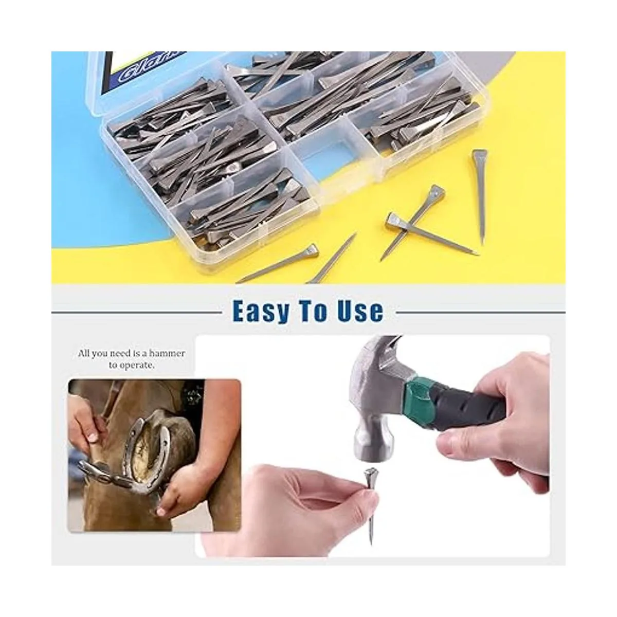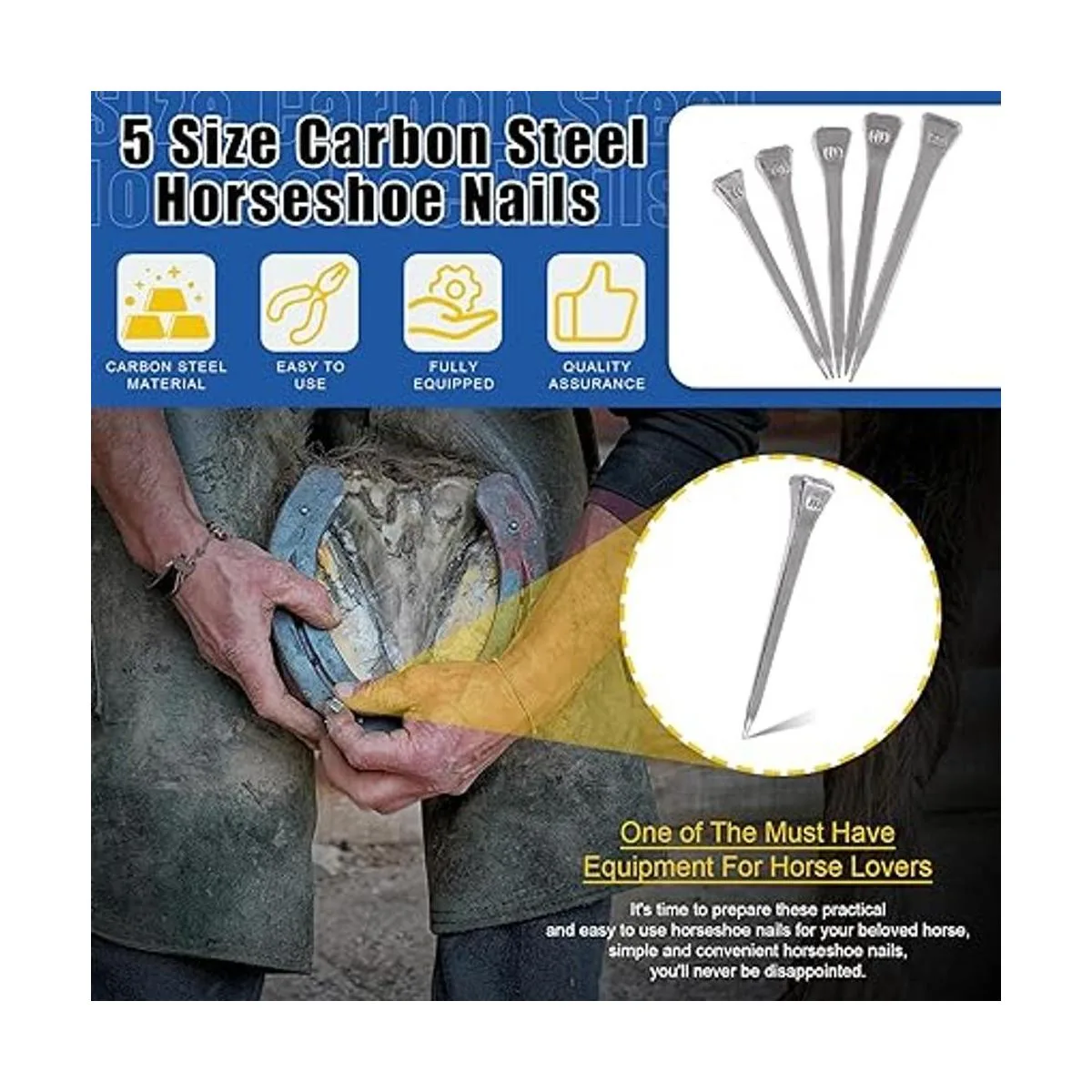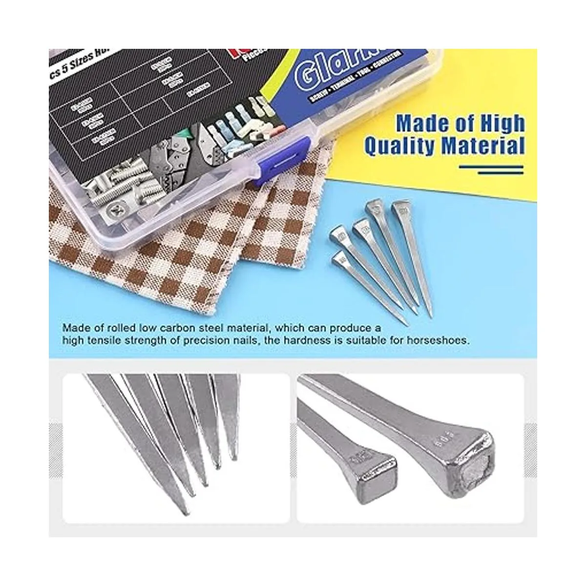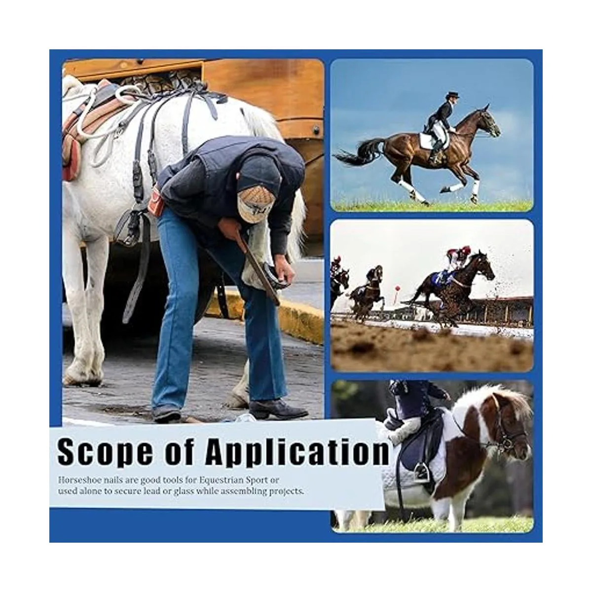 Material de alta calidad: todas las uñas de herradura están hechas de material de acero laminado de bajo carbono, que puede producir una alta resistencia a la tracción de clavos de precisión, la dureza es adecuada para herraduras.