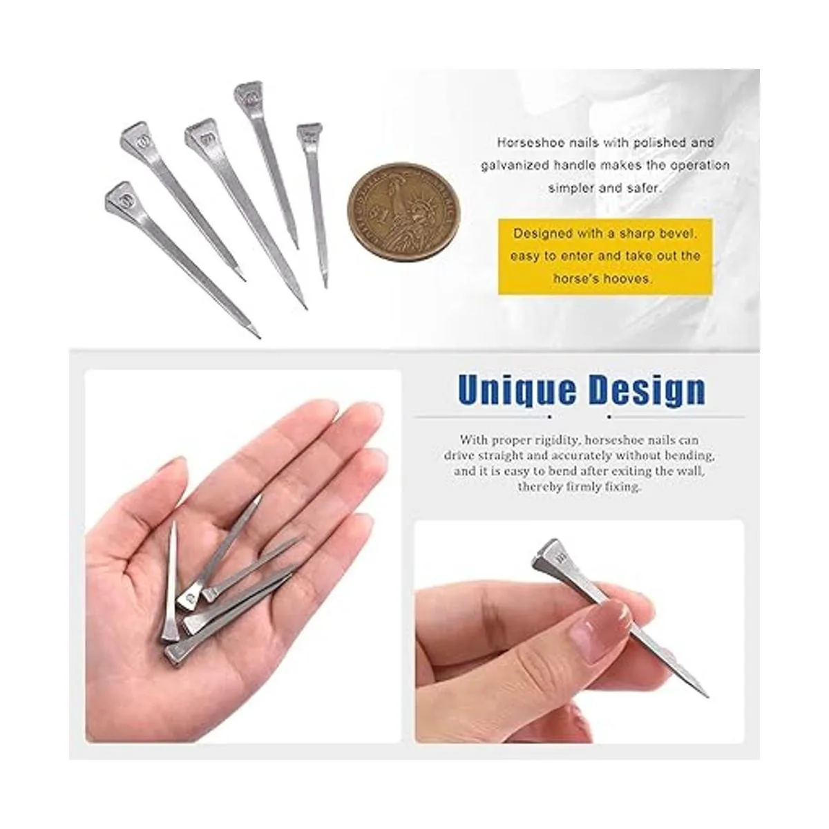 Diseño único: clavos de herradura con mango pulido y galvanizado que hacen que el funcionamiento sea más simple y seguro. Diseñado con un bisel afilado, fácil de entrar y sacar los cascos del caballo.
