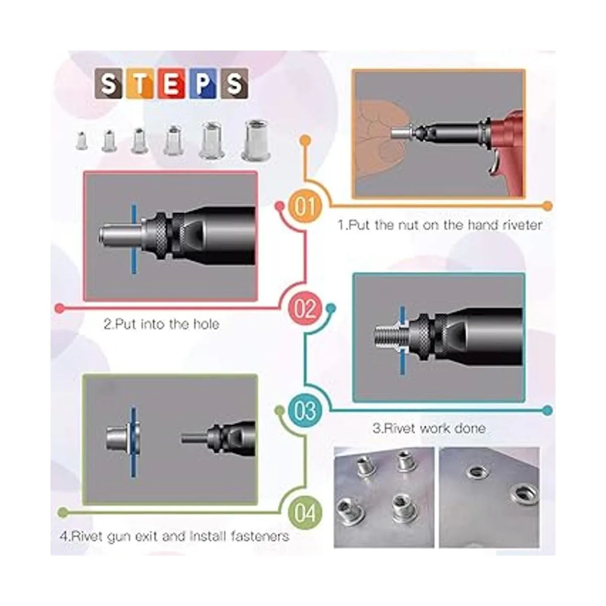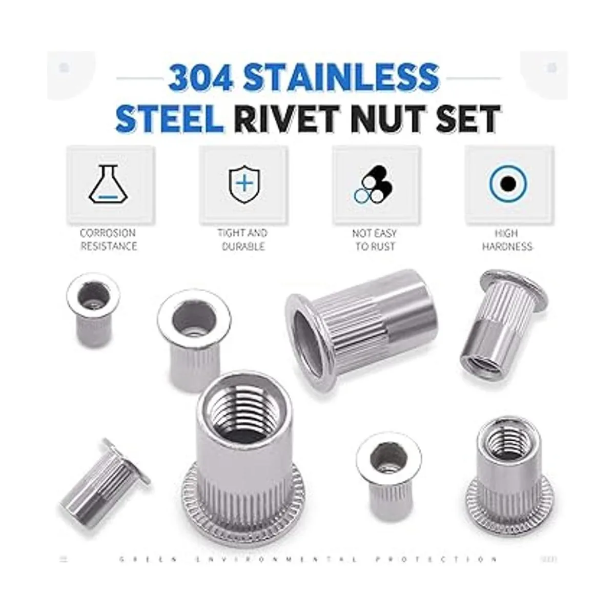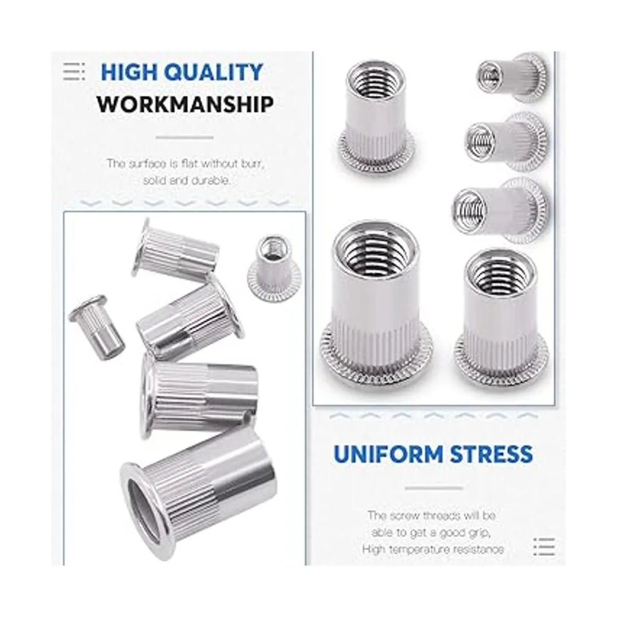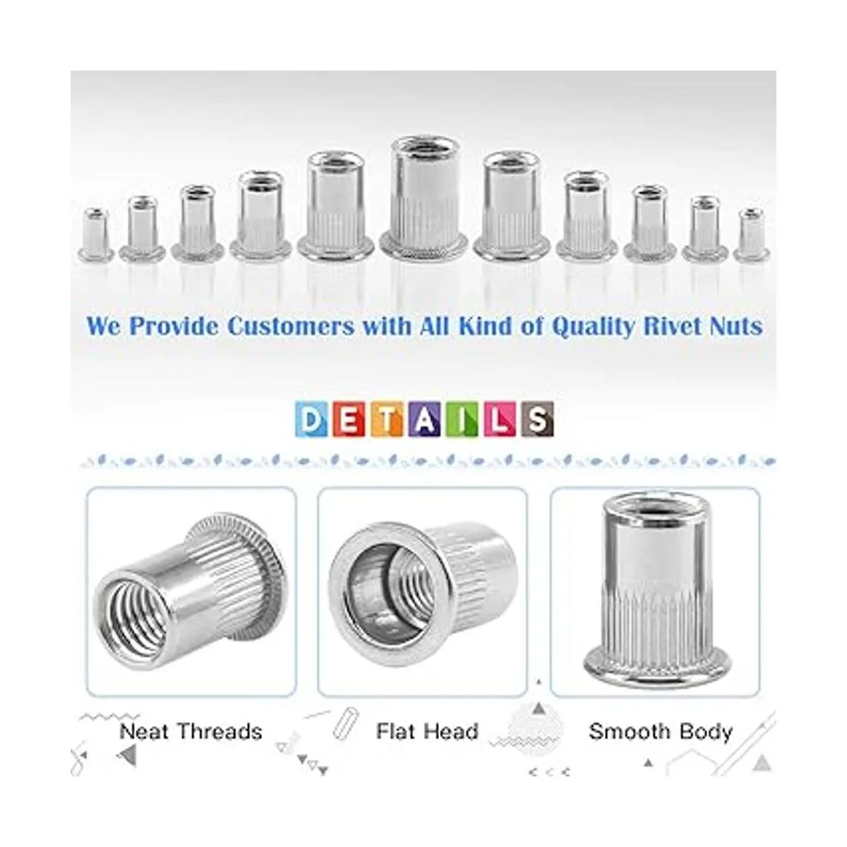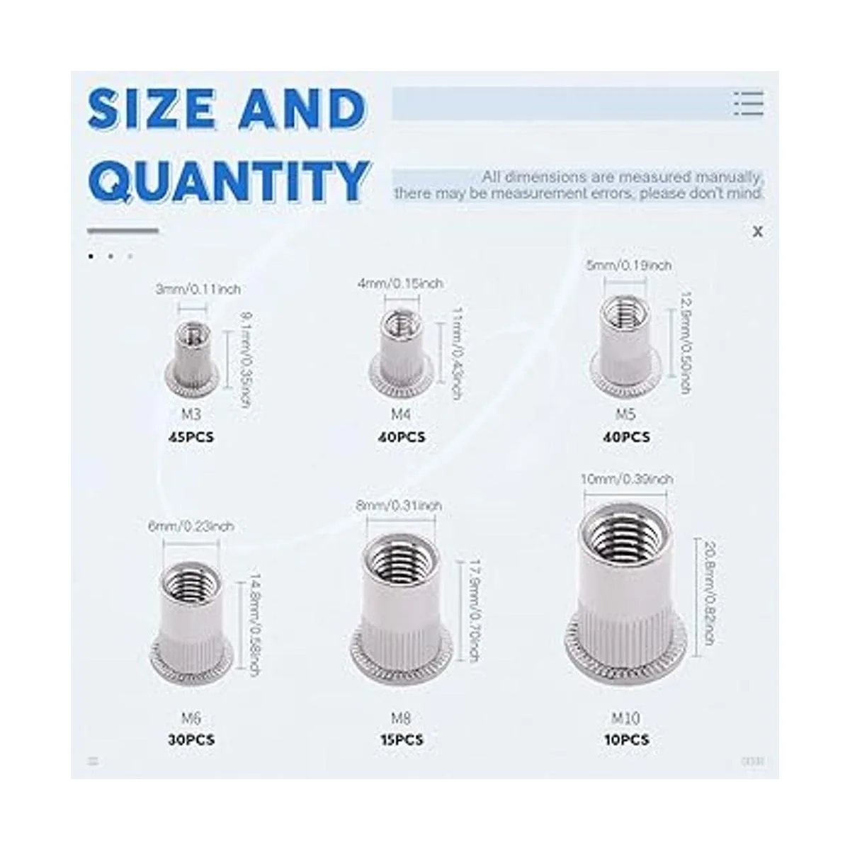 Contenido del paquete: 180 tuercas de remache incluyen 6 tamaños de M3, M4, M5, M6, M8, M10 para satisfacer tus diferentes necesidades.