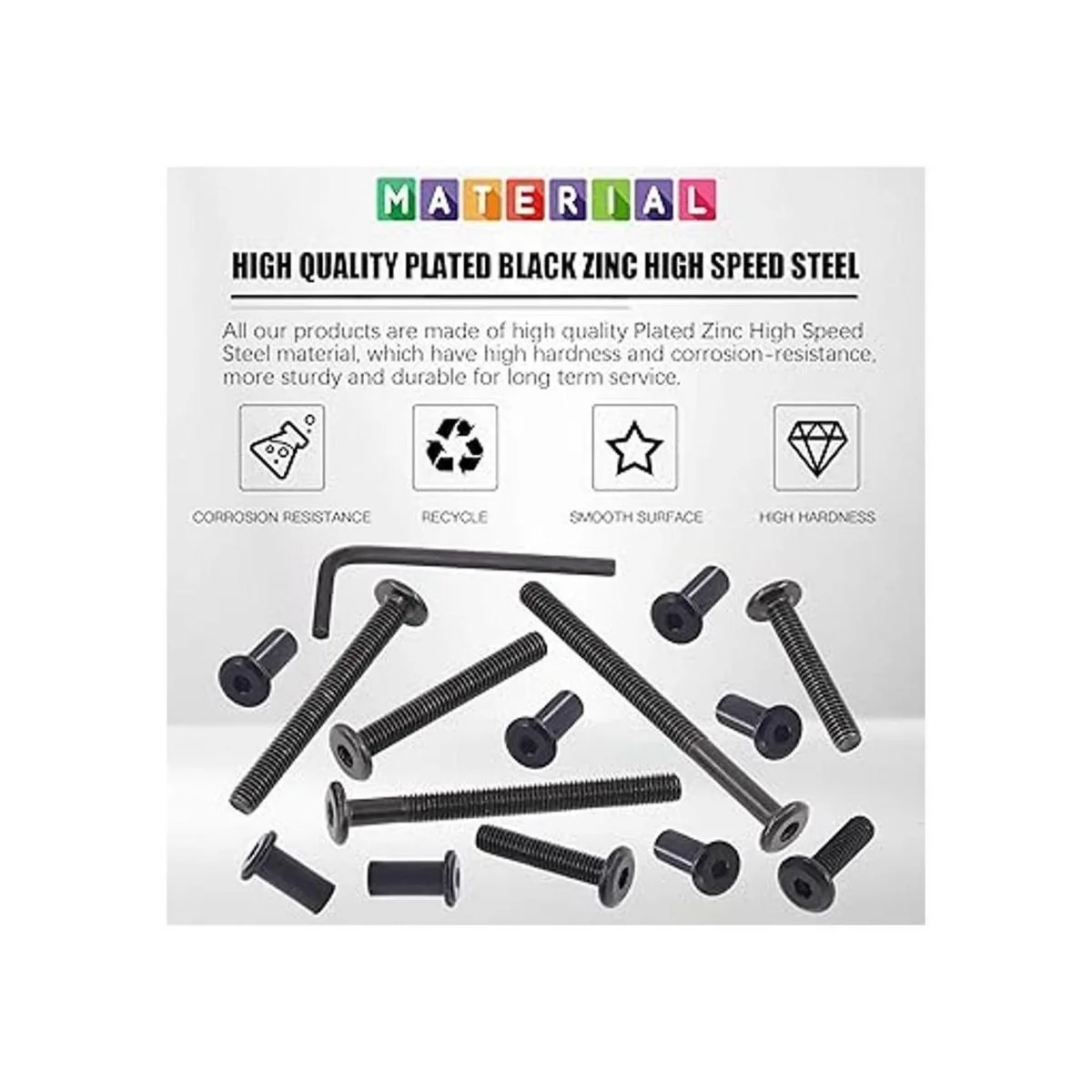 Materiales fiables: nuestros productos están hechos de metal de alta calidad, anticorrosivo y antioxidante, aumentan la vida útil de pernos y tuercas; el revestimiento negro en la superficie puede resistir la oxidación y hace que los productos brillen.