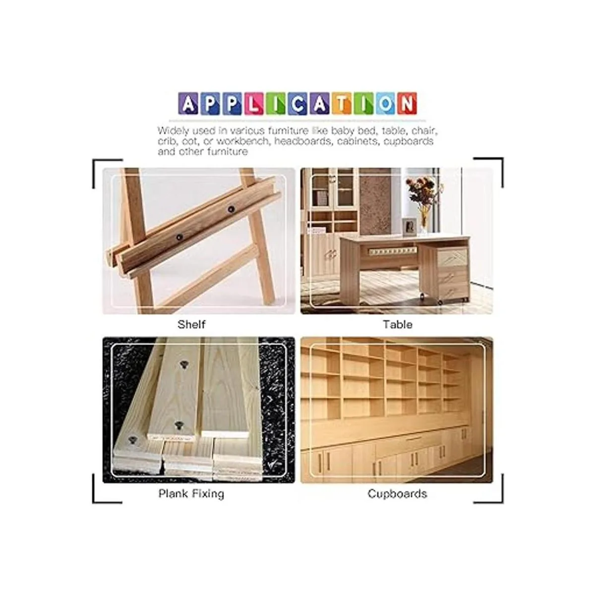 Ampliamente utilizado: nuestro producto se puede utilizar para diferentes tipos de muebles como cunas, armarios, literas, etc. También es bueno para electrodomésticos de oficina, equipos de comunicación, montaje de barcos y otras industrias de maquinaria.