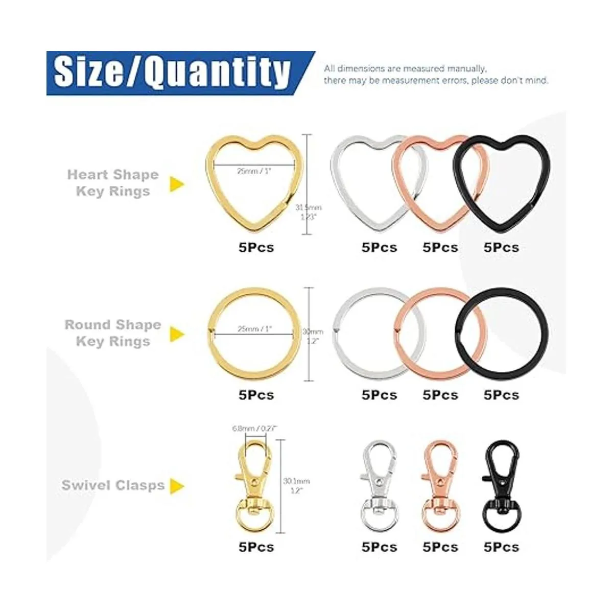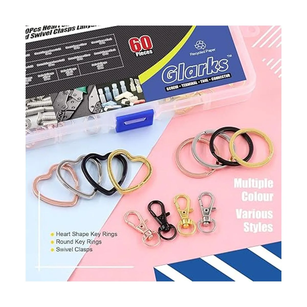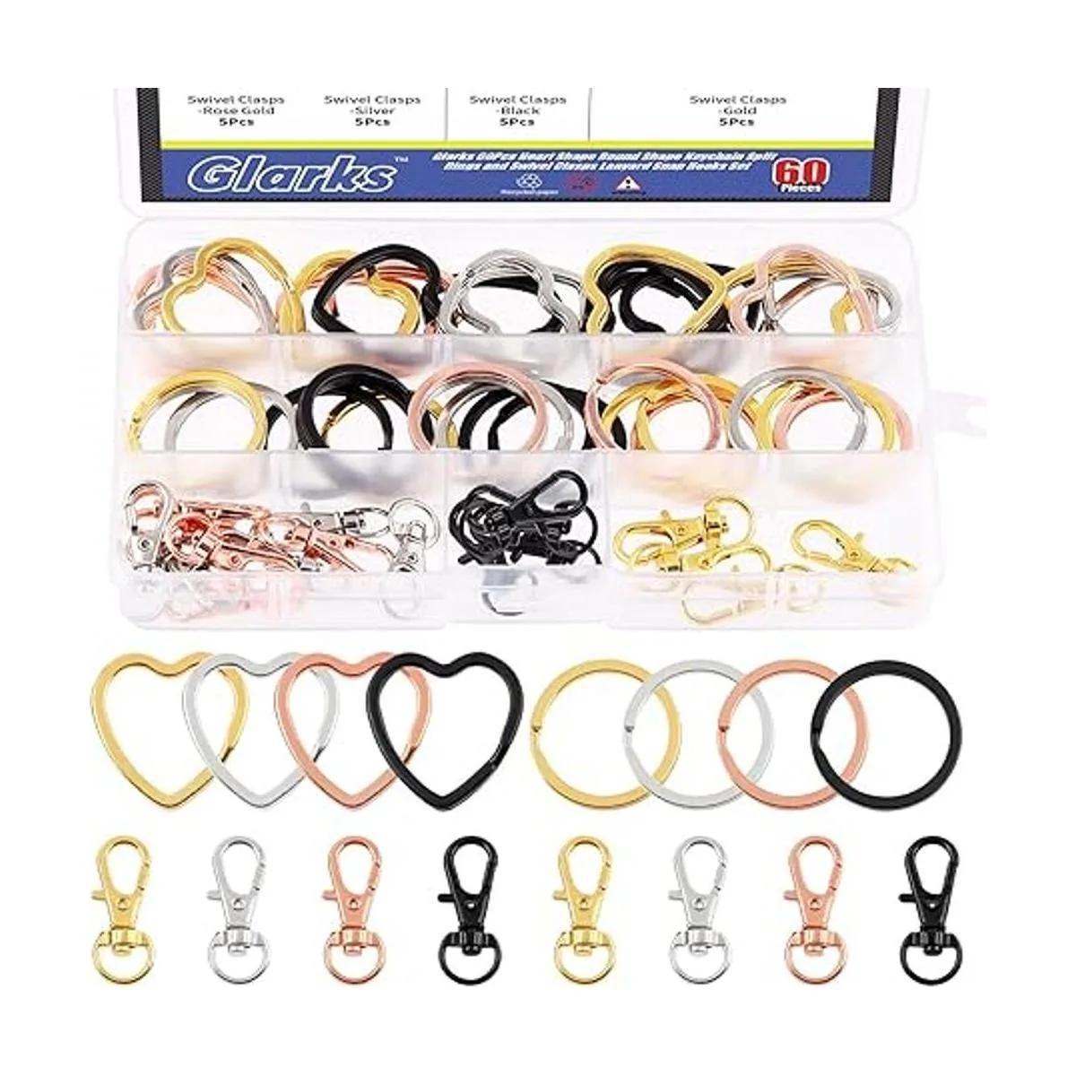 El paquete incluye: el kit de 60 llaveros planos Glarks incluye 20 llaveros en forma de corazón, 20 llaveros redondos y 20 cierres giratorios, 60 piezas en total, 3 tipos de llaveros son suficientes para satisfacer tus necesidades de llavero de bricolaje.