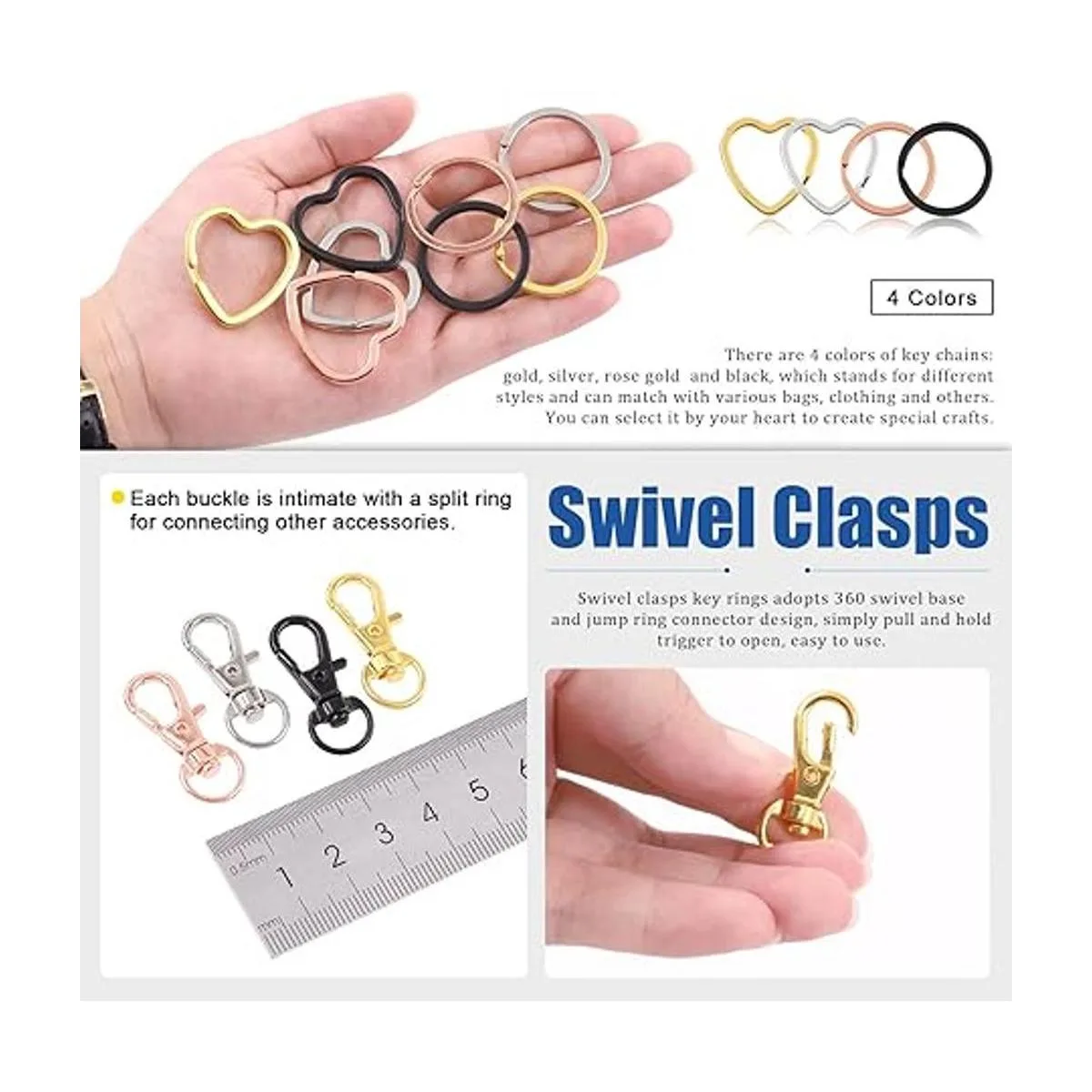 Glarks Kit de 60 llaveros planos, 4 colores creativos en forma de corazón y forma redonda, llaveros divididos con cierres giratorios, gancho a presión para la organización de llaves del hogar del automóvil, manualidades, cordones