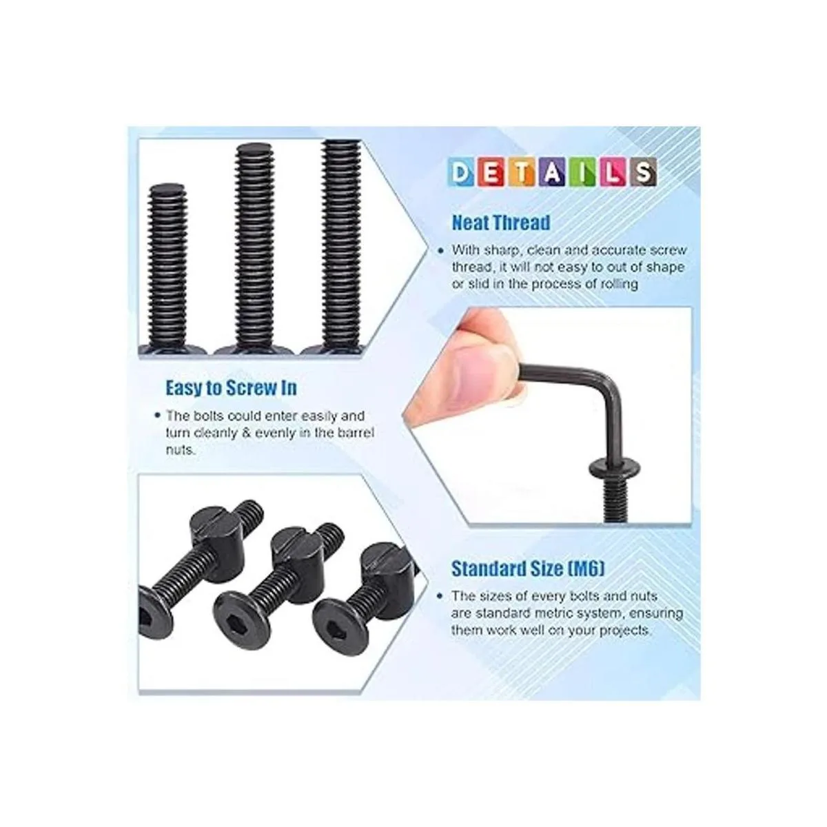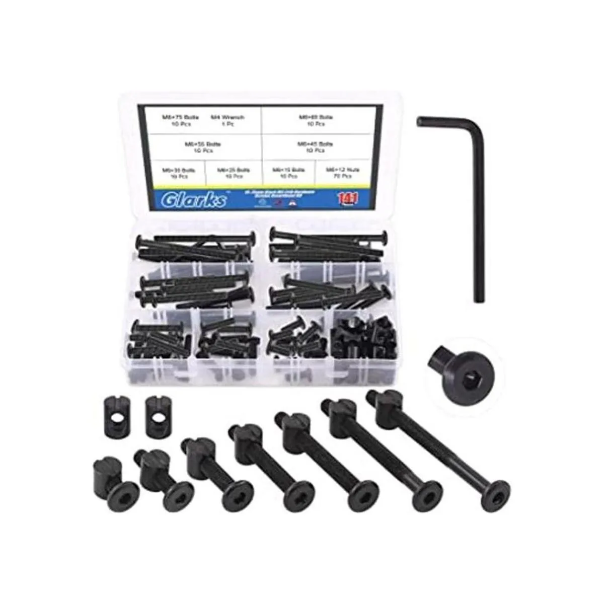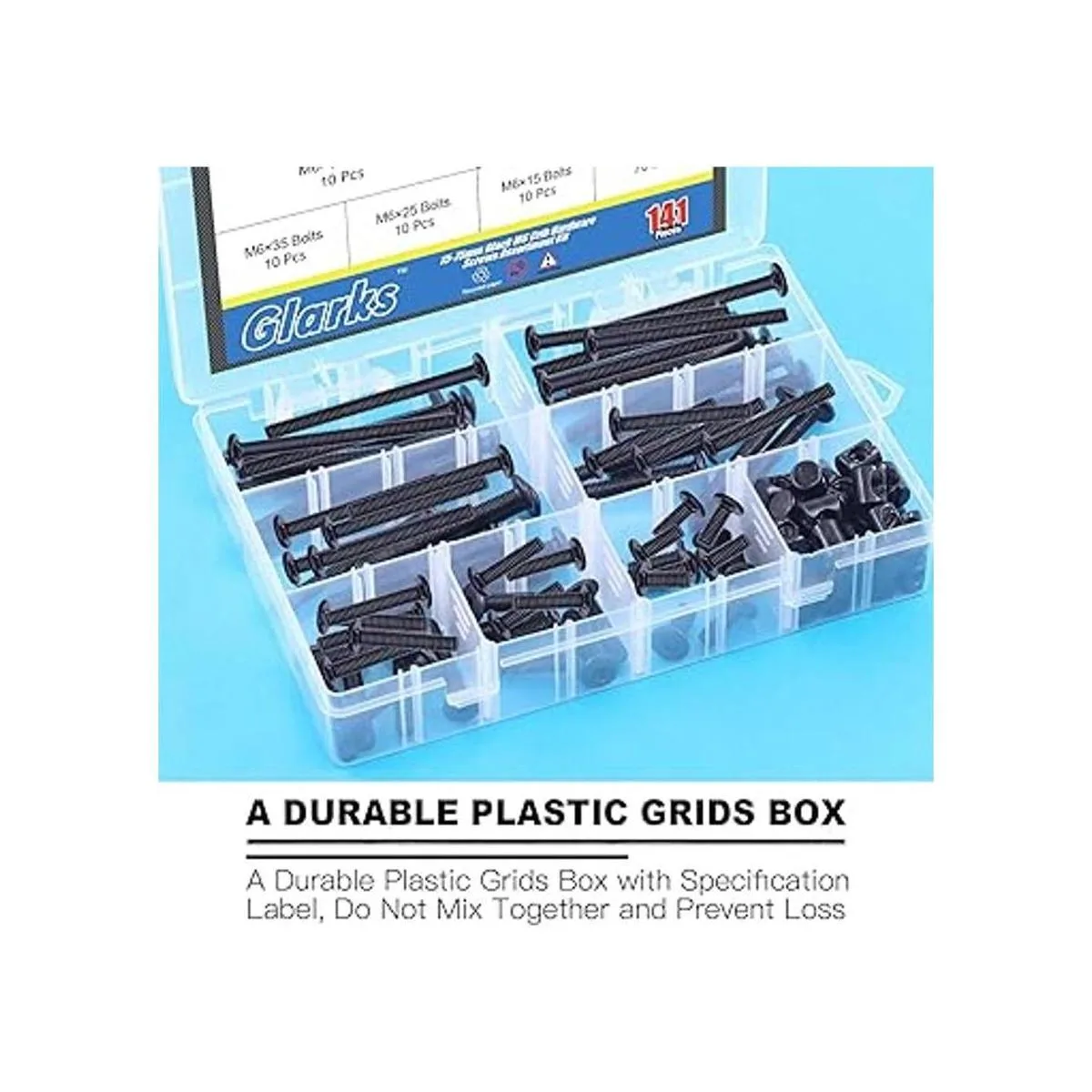 Glarks Kit de repuesto de 141 tornillos para cuna de bebé, M6x1525354555652.953 in, kit surtido de tornillos y tuercas hexagonales negros para sillas y mesas de gabinetes, muebles