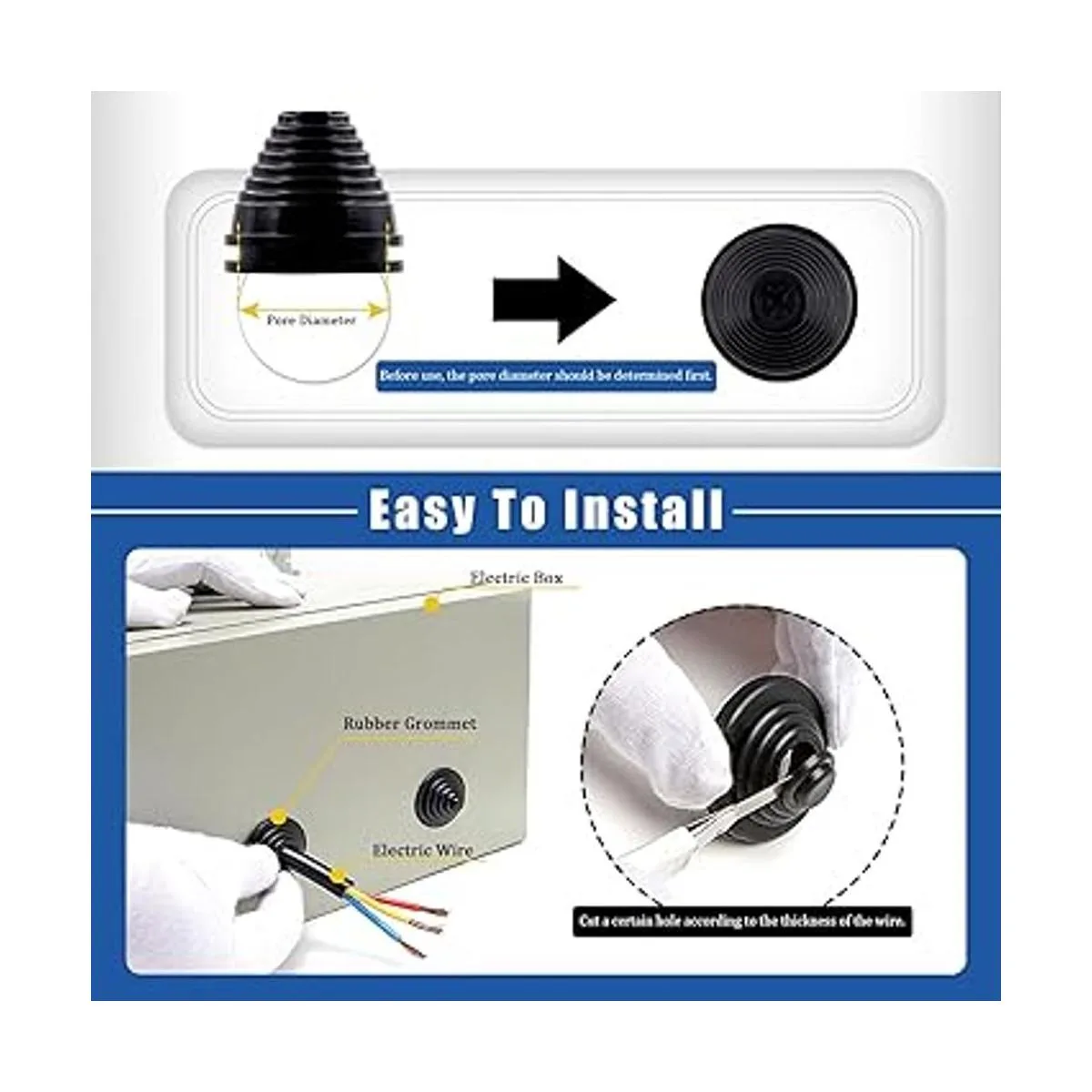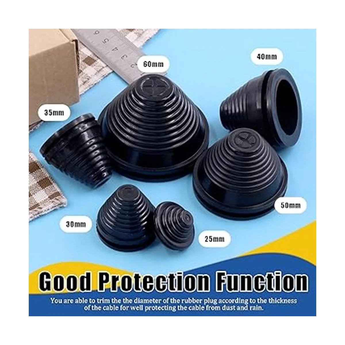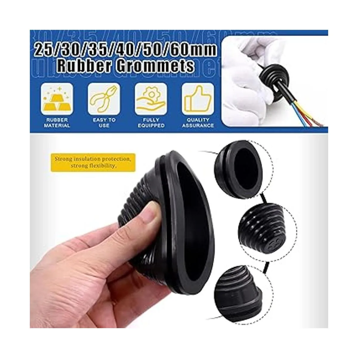 Glarks Kit surtido de 26 ojales de goma de 6 tamaños, 0.984 in1.181 in1.378 in1.575 in1.969 in2.362 in, ojales negros en forma de torre, protección de cables, enchufe de agujero de cortafuegos para cable, enchufe, fontanería