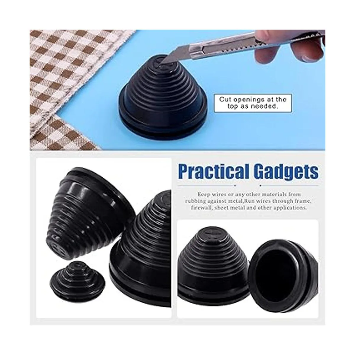 Material de calidad: estos ojales en forma de torre están hechos de material de goma de alta calidad, que tiene un buen rendimiento de estanqueidad, resistencia al envejecimiento y fuerte protección de aislamiento, puede proteger tu cable de daños perfectamente.