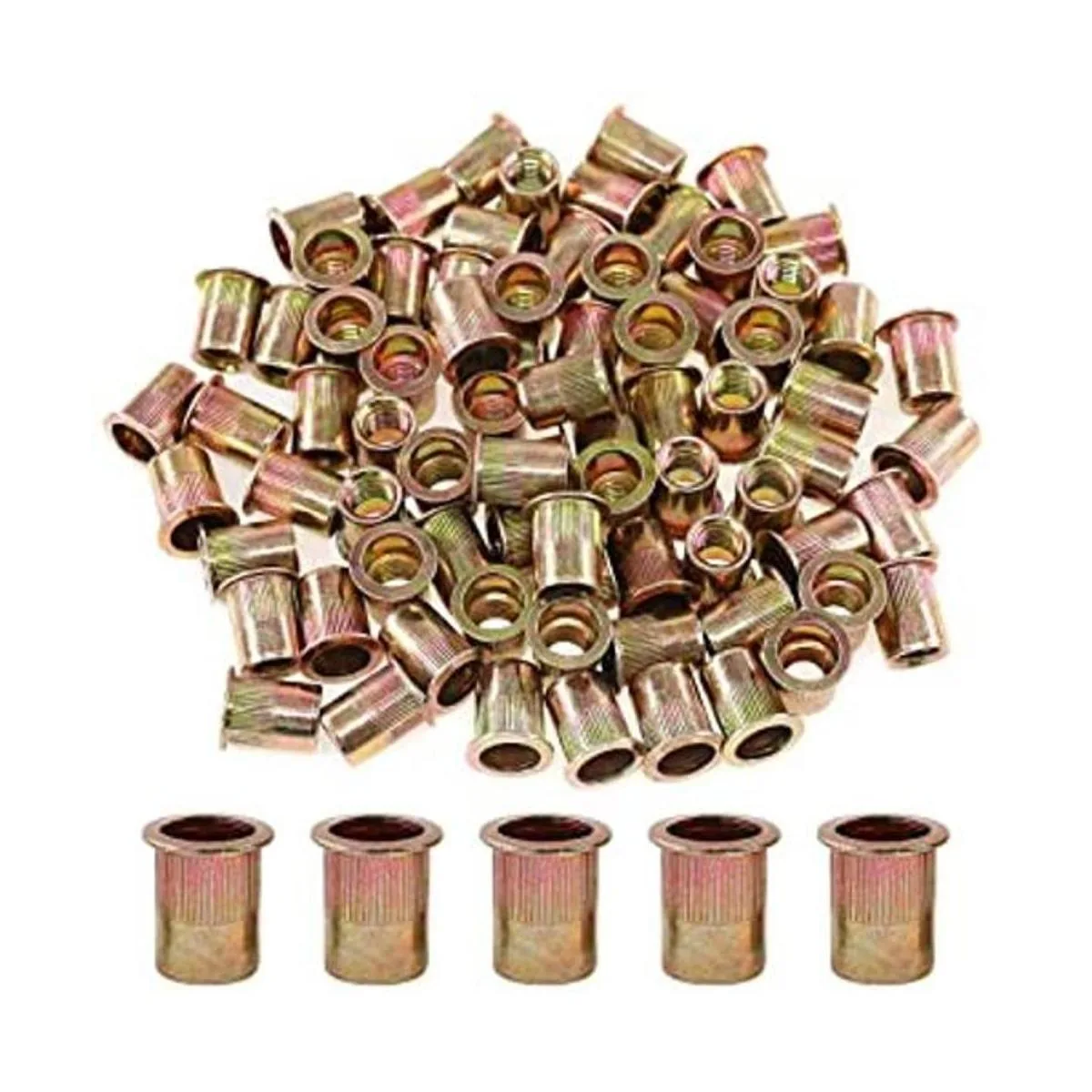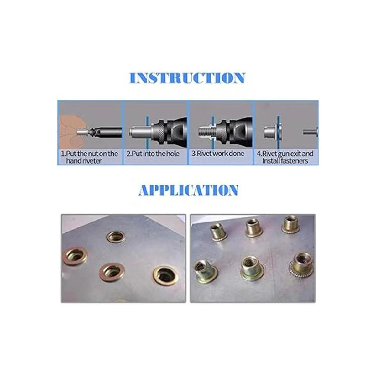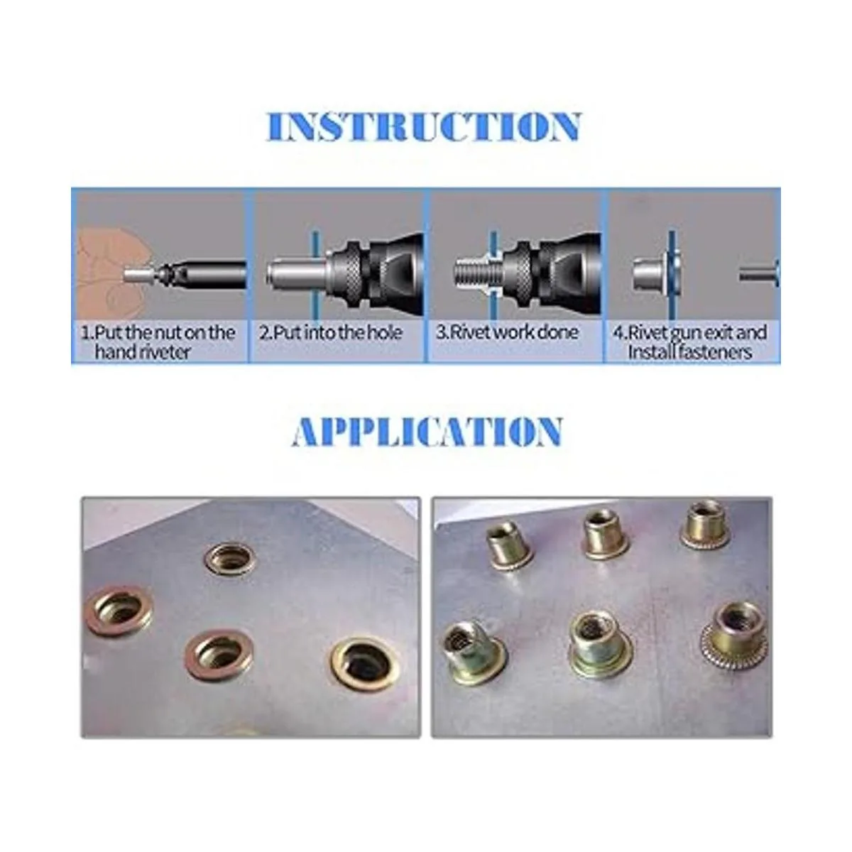 Calidad duradera: todas las tuercas de remache están hechas de acero al carbono, con chapado en zinc en la superficie, fuerte y duradero, ya no te preocupes por que se oxiden y rompan al instalarlas.