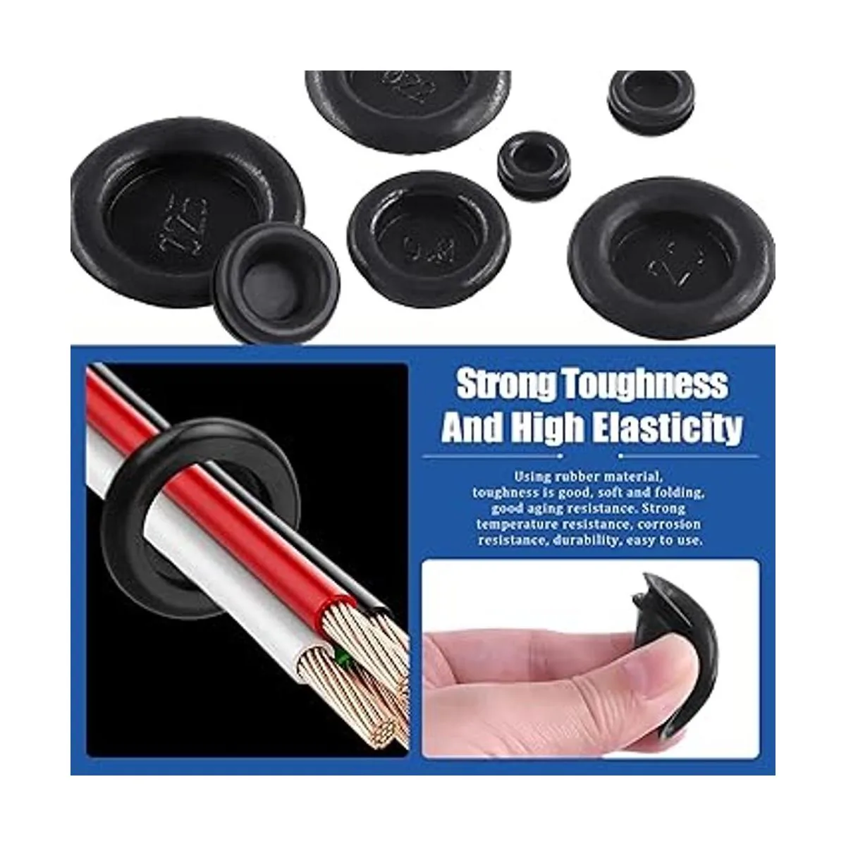 Amplio uso Nuestros ojales de goma se pueden aplicar en válvulas, cilindros, tuberías de agua, electrodomésticos, etc. Pueden ayudar a evitar que el alambre y el cable de metal puntiagudo. También se puede utilizar para sellar agujeros que ya no están en uso o para hacer agujeros centrales de tu propio tamaño según sea necesario.