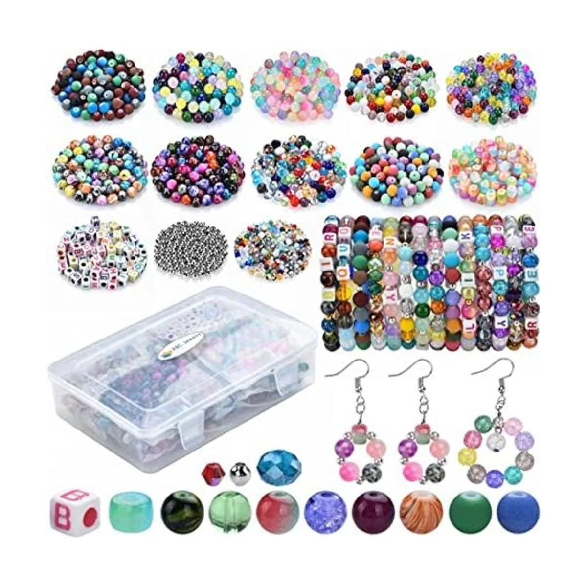 1400Pcs 2 Kind SIZE You can get About 1400Pcs Beads Including 1000 PCS 8MM Round Glass Beads, 200PCS 4MM Crystal Glass Bicone Beads, 100PCS 4mm Silver Spacer Beads, 100PCS Letter Beads, The rope can easily pass through the hole, Great for your Bracelet making or DIY Jewelry Making Craft Project