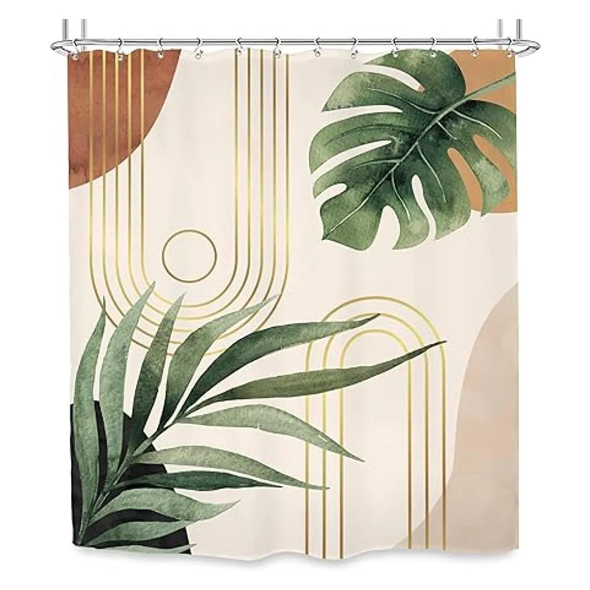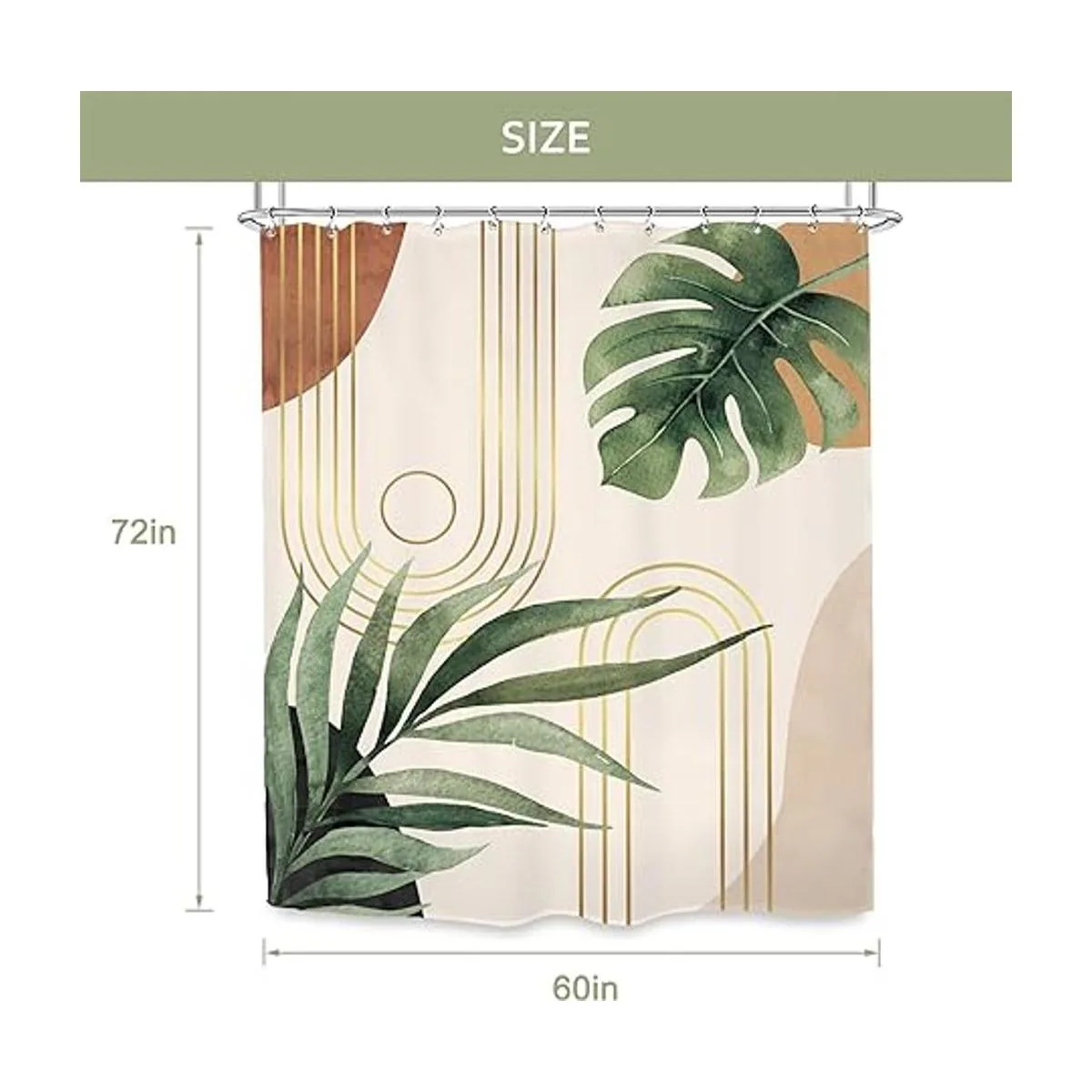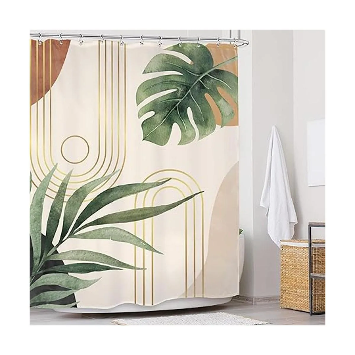 Glawry Cortina de ducha bohemia tropical de mediados de siglo para baño, diseño bohemio, planta abstracta, botánica, baño, 60 pulgadas de ancho x 72 pulgadas de largo, diseño de palma, minimalista, colorido, accesorios de baño, arte para decoración del hogar