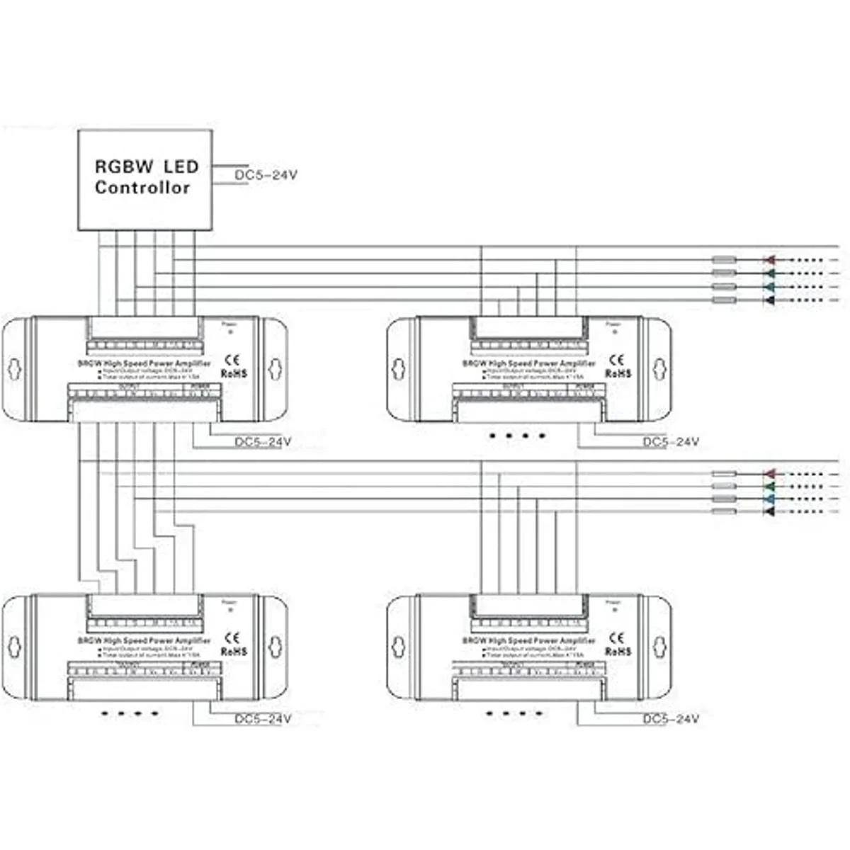 GLC RGBWRGB alta velocidad amplificador de potencia 40A señal de datos repetidor 4CH canales para LED28355050 5V24V