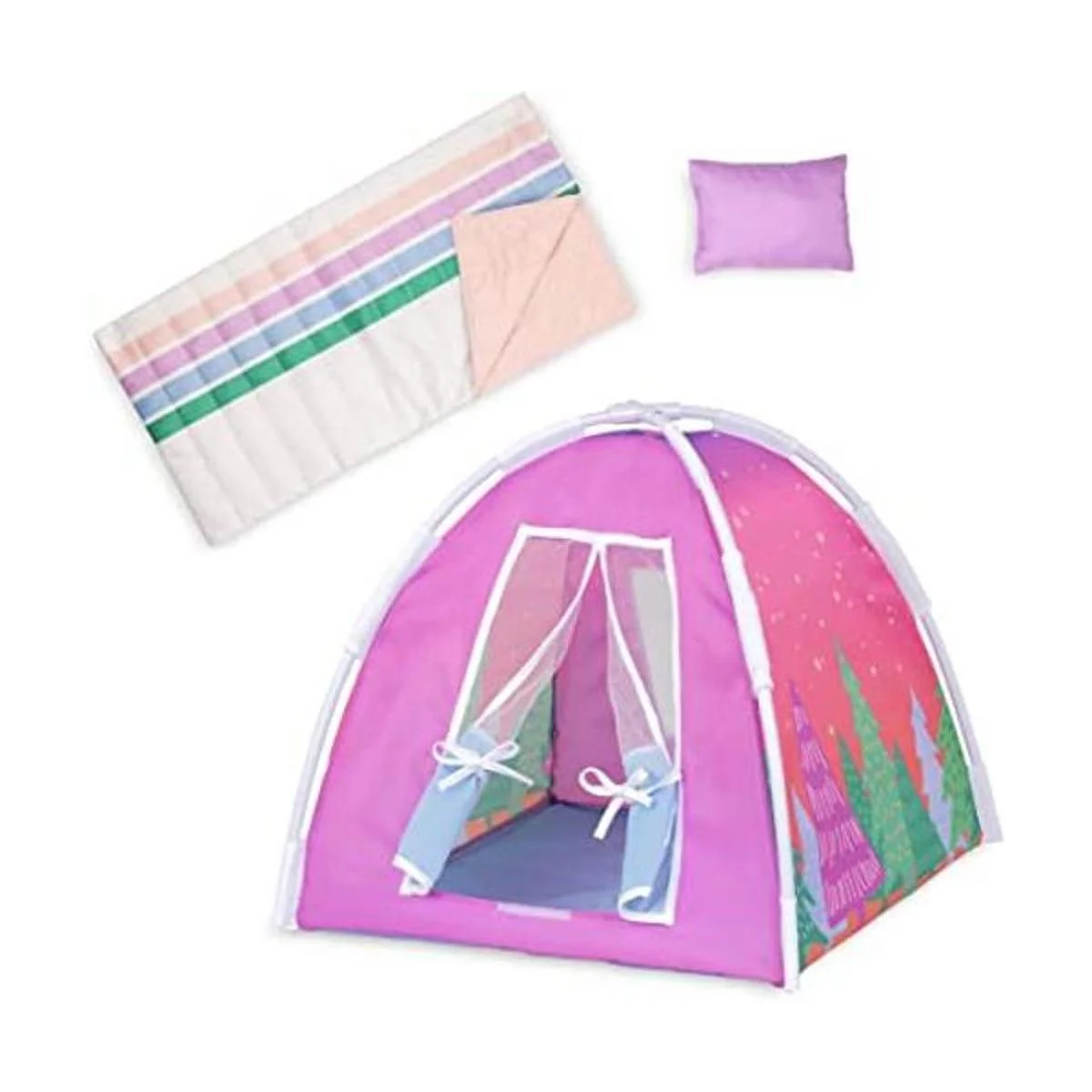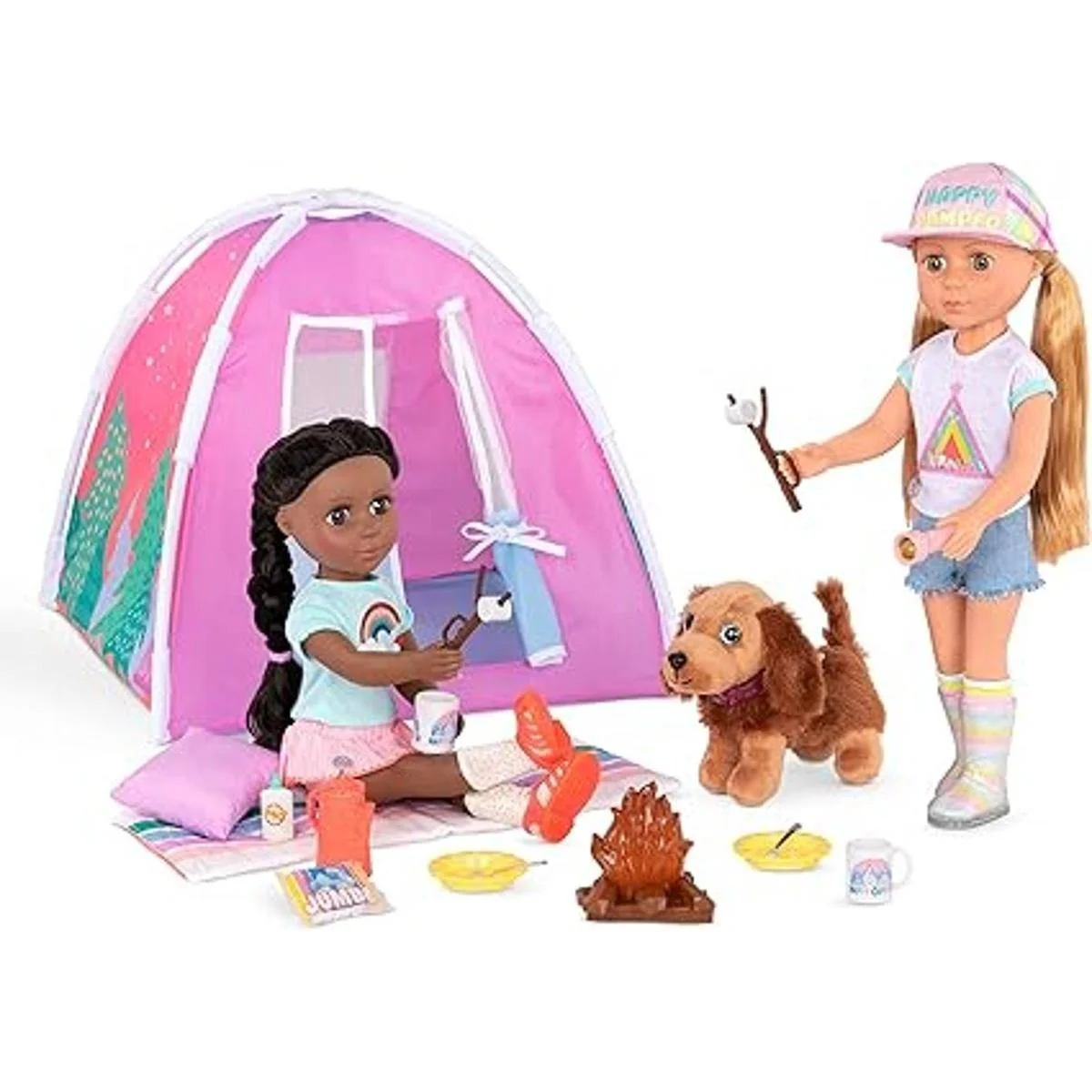 Establece la escena: acampar bajo las estrellas con el juego de tienda de campaña y saco de dormir Glitter Girls para muñecas de 14 pulgadas