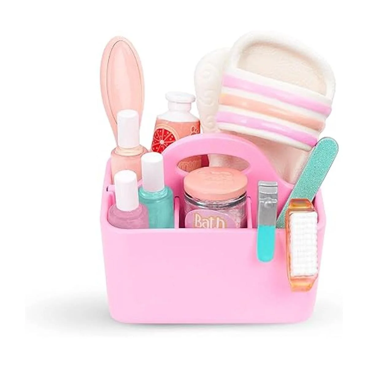 Incluye: silla de salón, secador de pelo con capucha que se levanta hacia arriba y hacia abajo, organizador portátil, baño de pies, máscara de ojos, 3 botellas de color de uñas, taza de viaje, botella de loción, lima de uñas y pies, cepillo de uñas, cortaúñas, crema de pies, sal de baño, par de sandalias y 1 revista.