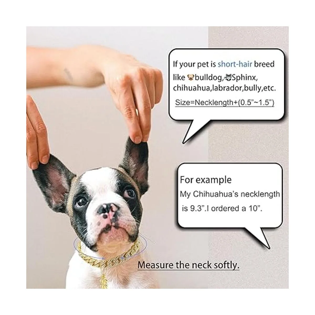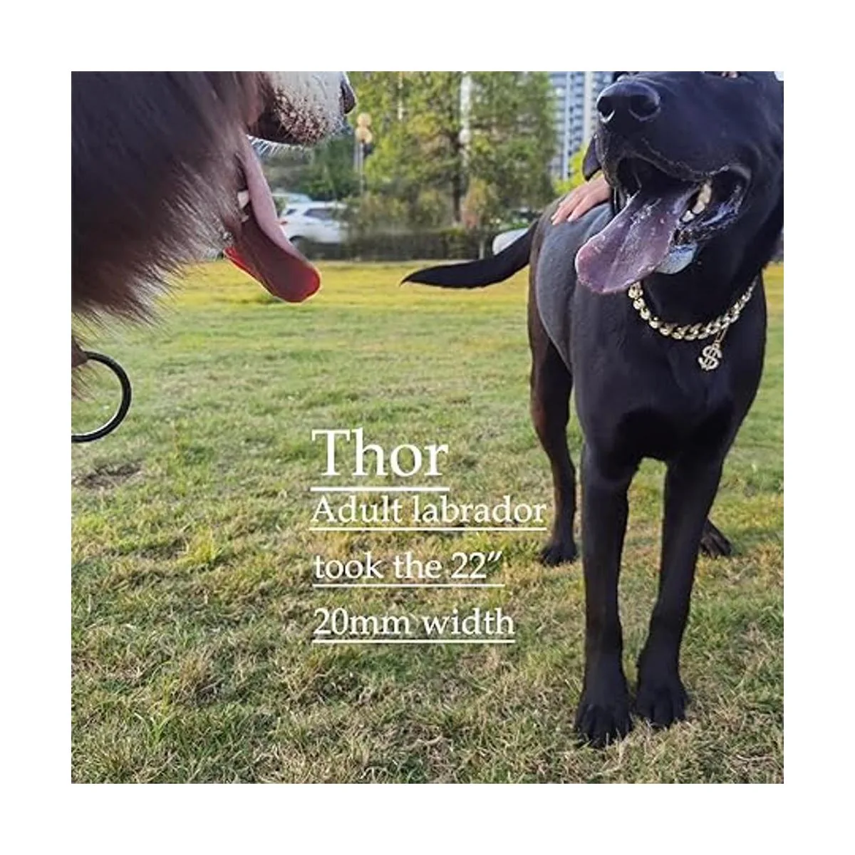 Glitter King Collar de perro dorado de 0.39 pulgadas 0.787 in, cadena de eslabones cubanos de circonita hecha a mano con dije de dólar exagerado, juego de puntas de circonita cúbica completa, joyería pesada para mascotas